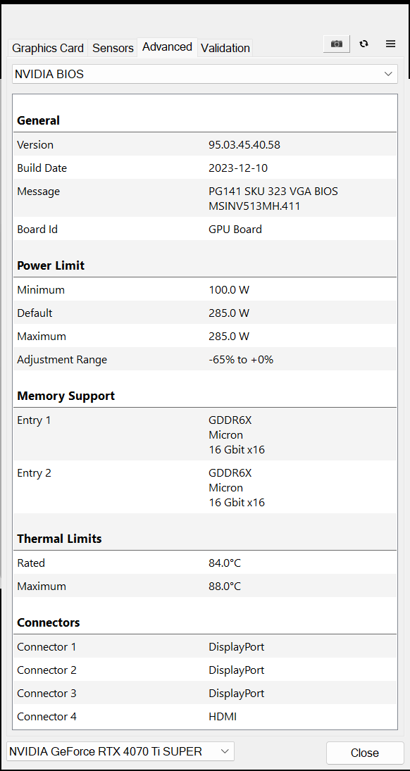 We have just re-visited the RTX 4070 Ti Super using the latest BIOS, which MSI has made publicly available HERE. We published a separate article investigating the latest BIOS compared to the original one, and you can find all the details HERE. In short, even the latest BIOS does not affect the results in any meaningful way, and we saw just a 1% difference on average compared to our original figures in this review.