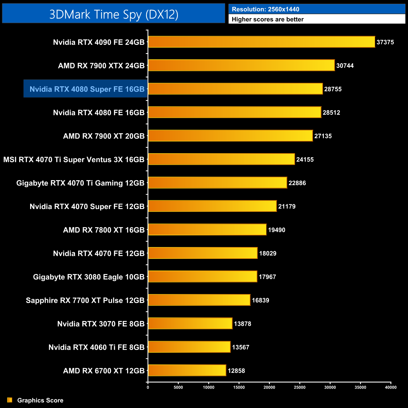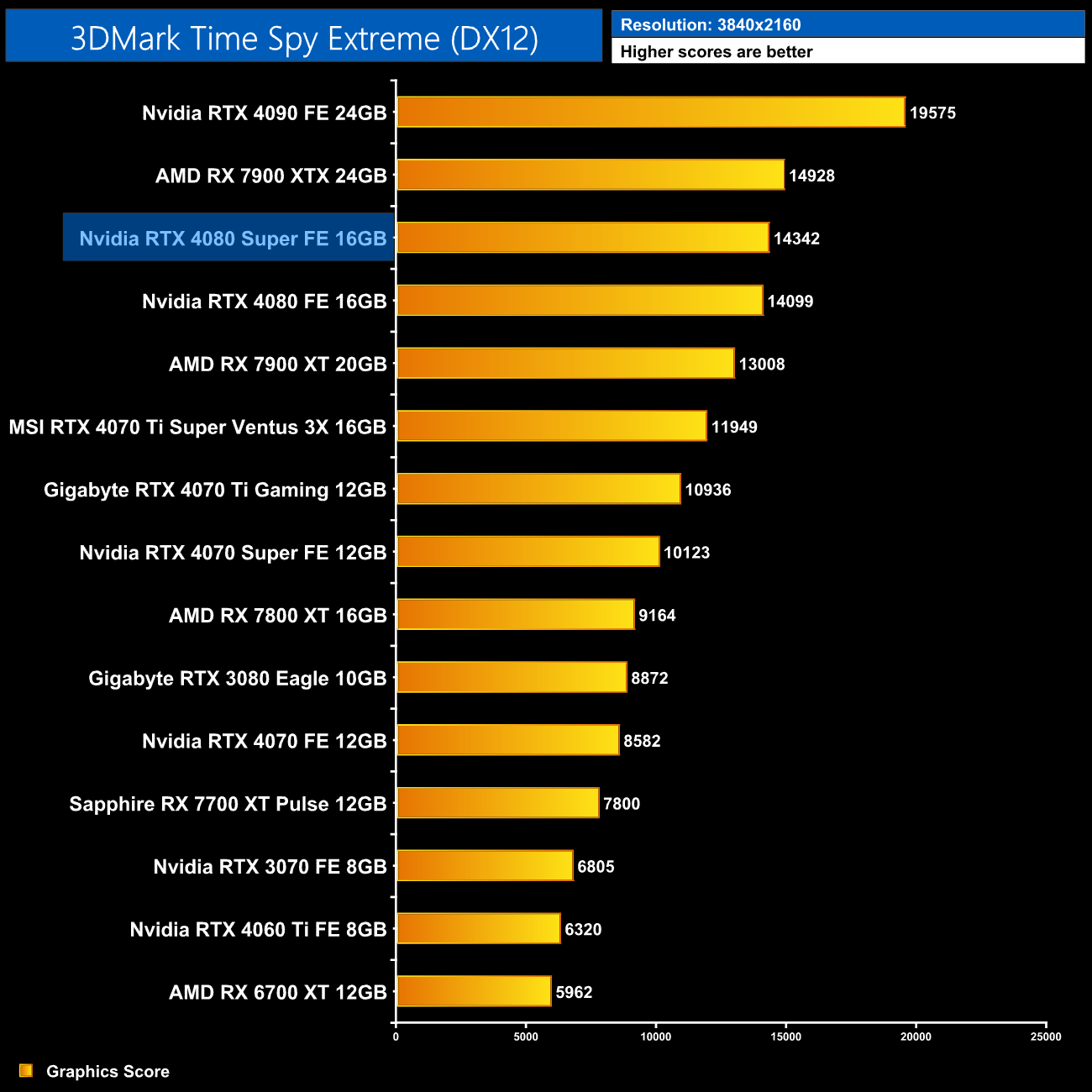3DMark gives us an initial look at the RTX 4080 Super and it is neck-and-neck with the original 4080, only coming in 2% faster in Time Spy Extreme.