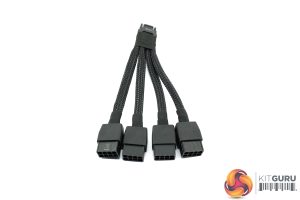 Inside, a quick-start guide and power supply notes are included, as well as the 4x 8-pin to 12VHPWR adapter.