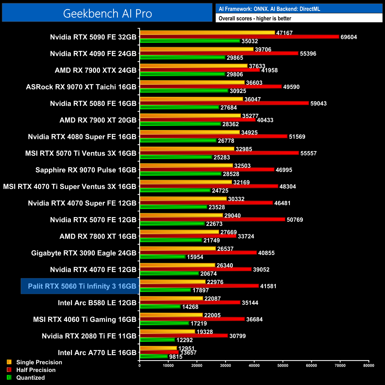Nvidia GPUs are most impressive when looking at Geekbench's Half Precision metric, this time resulting in a 13% gain over the 4060 Ti 16GB.