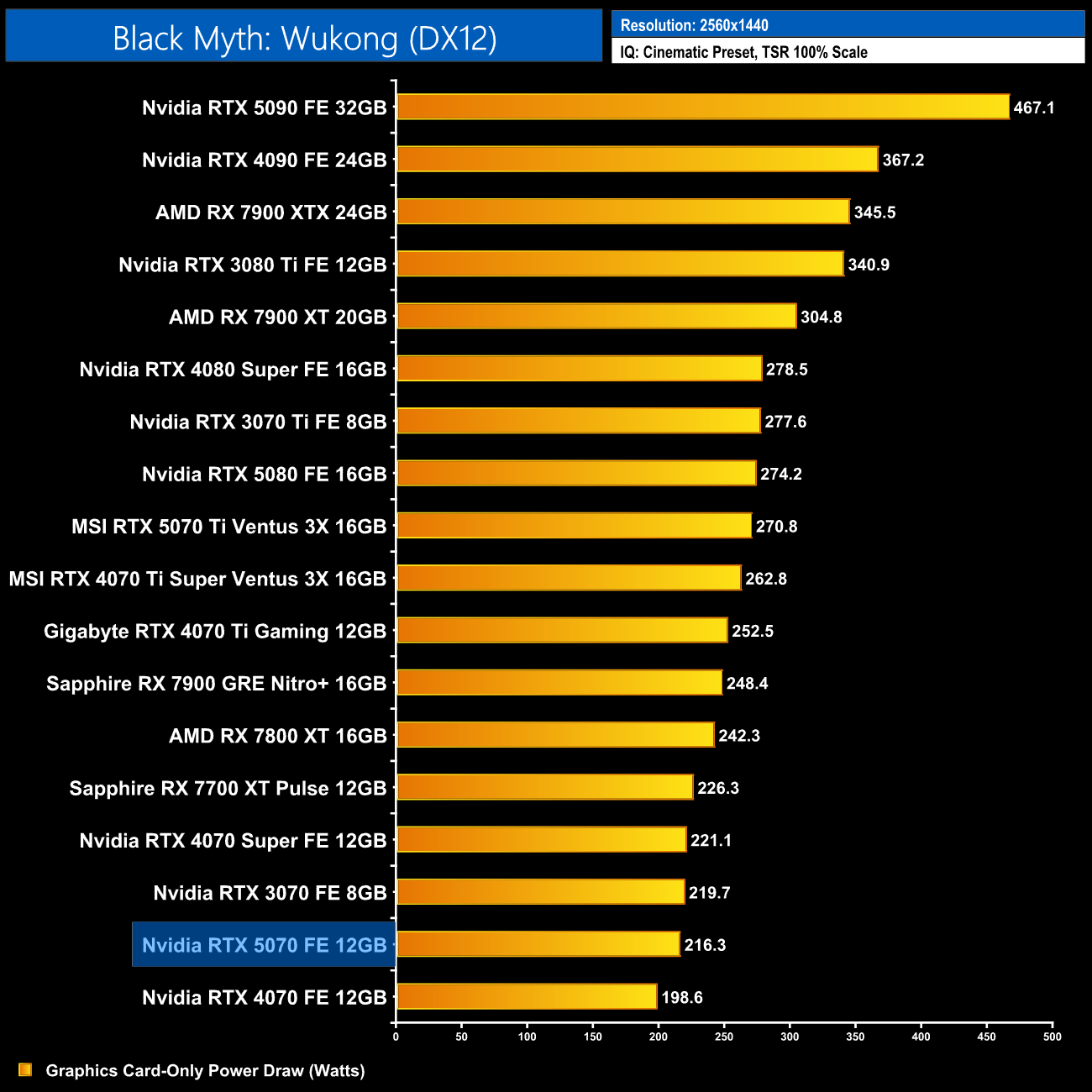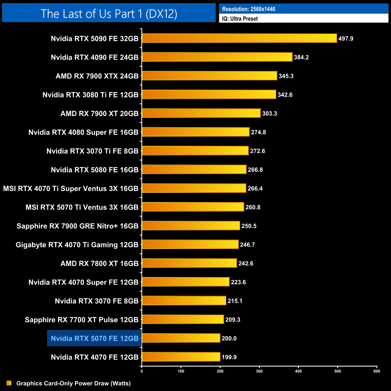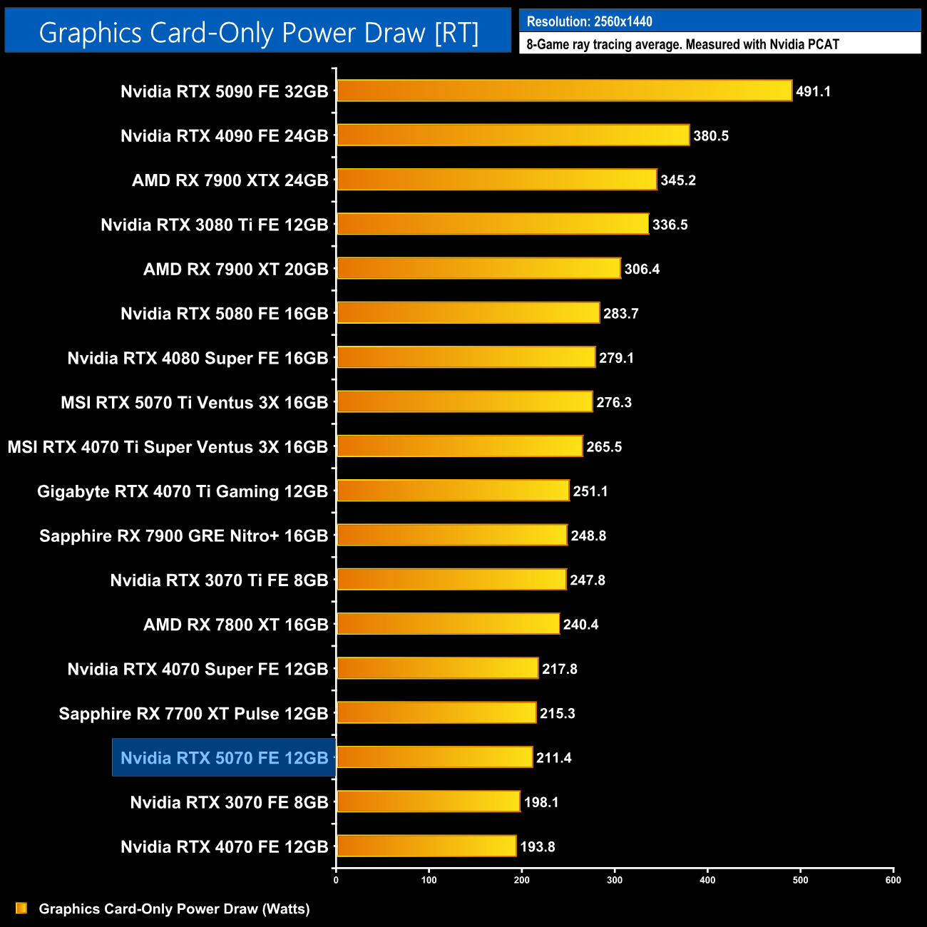 Here we present power draw figures for the graphics card-only, on a per-game basis for all twelve games we tested at 1440p. This is measured using Nvidia's Power Capture Analysis Tool, also known as PCAT. You can read more about our updated power draw testing methodology HERE.