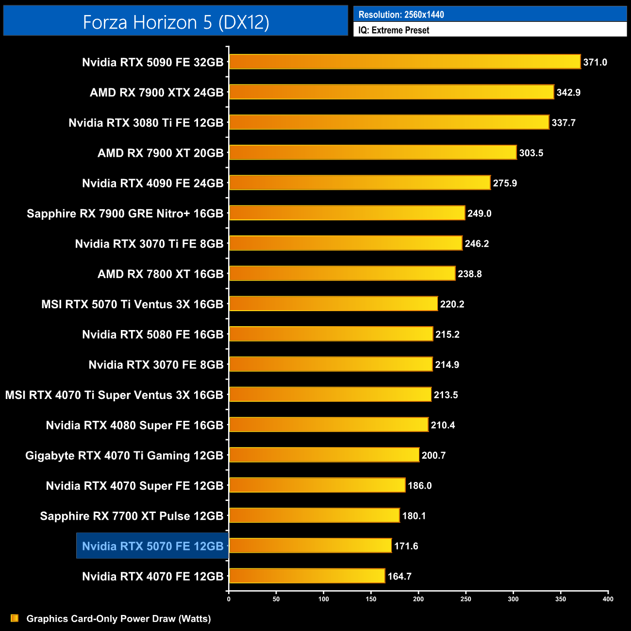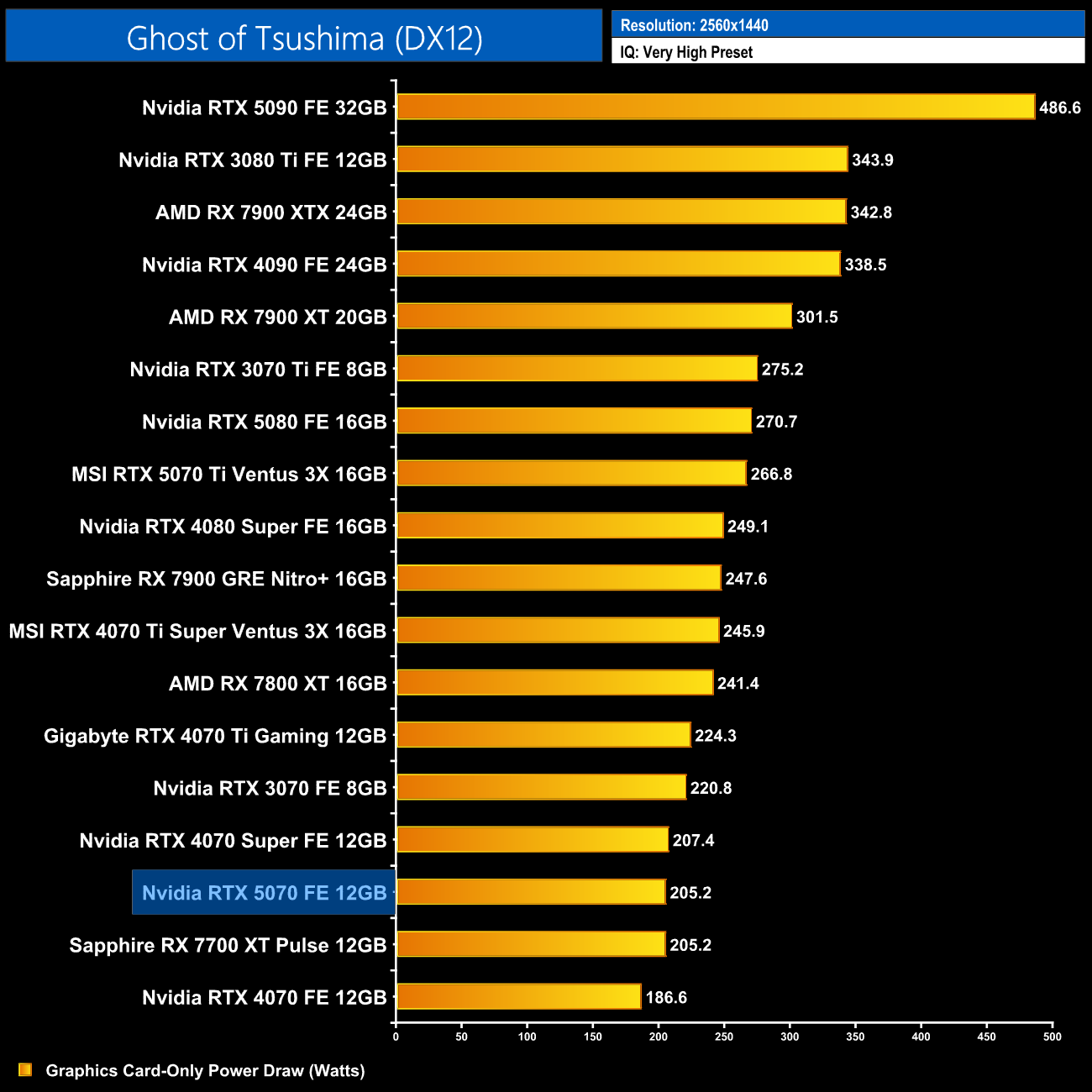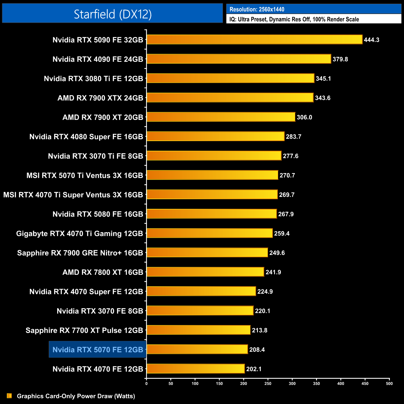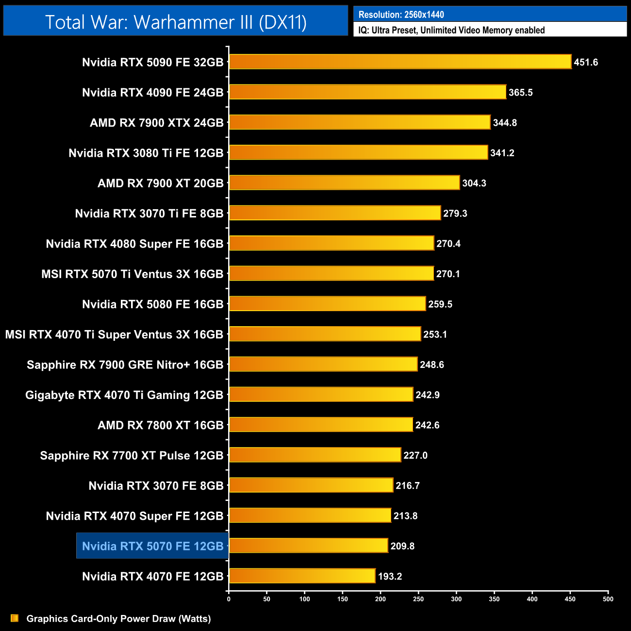 Here we present power draw figures for the graphics card-only, on a per-game basis for all twelve games we tested at 1440p. This is measured using Nvidia's Power Capture Analysis Tool, also known as PCAT. You can read more about our updated power draw testing methodology HERE.
