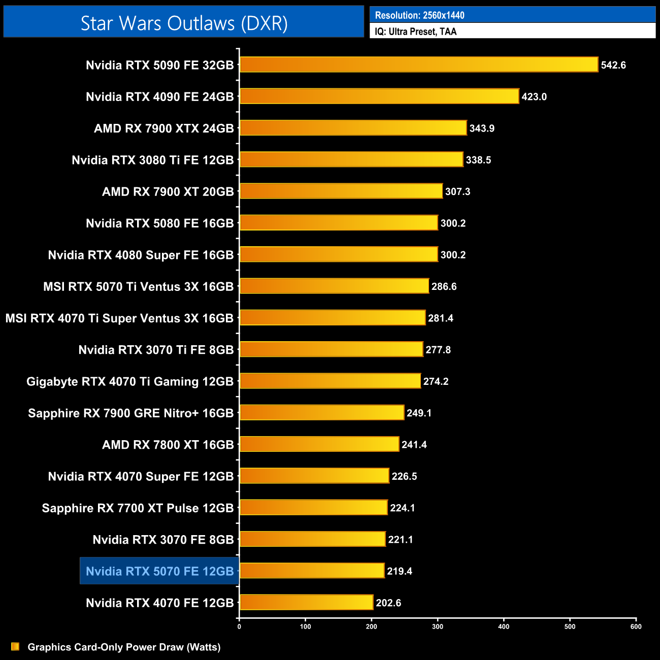 At 1440p, average power draw has increased to 208W over the twelve games tested, and that's still a slight decrease compared to the 4070 Super, but only a reduction of 7 or-so watts.