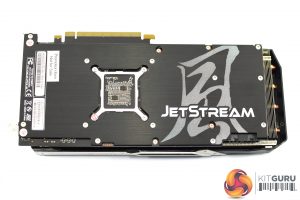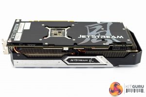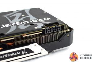 As for the backplate, this is made from brushed metal and covers the length of the PCB, with a small cut-out behind the GPU core. It's mostly plain apart from the JetStream logo positioned on the right side of the backplate.