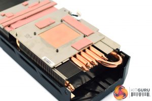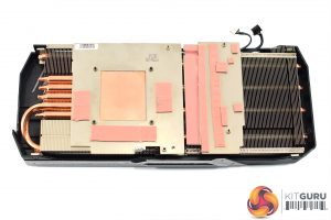 There's also two separate coldplates that form part of the cooler. One is for the VRAM chips, with a copper contact area for the GPU die, while the other coldplate is to cool the VRM.