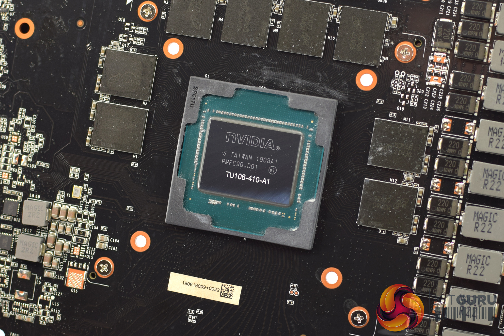 On top of this, the GDDR6 memory is from Micron and each chip is labelled ‘9EA77D9WCW'. The TU106 GPU bears the ‘410' model code, indicating this one of the new GPUs introduced after Nvidia stopped binning its chips in ‘A' and ‘non-A' stacks.