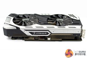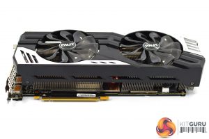 We also get a look at the two fans – Palit's TurboFan Blade 2.0 design, with each fan measuring 100mm in diameter. Curiously, while there is a fan-stop mode with this card, it only functions if you use the secondary BIOS which I think is strange – but we'll get to that later.