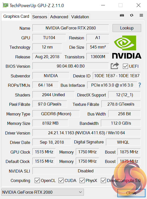 What the Palit RTX 2080 GameRock Premium does is raise the boost clock from 1800MHz (from the Founders Edition) to 1875MHz – one of the higher boost clocks we have seen from an aftermarket RTX 2080. This is the out of the box speed, too – no need to download any software to enable an ‘OC mode' or anything like that.