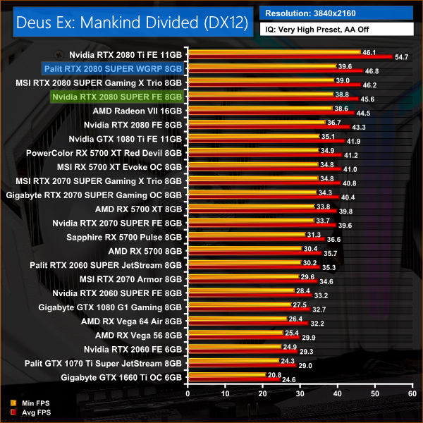 Deus Ex: Mankind Divided shows less significant gains for the WGRP, with the card proving 2% faster than the Founders Edition. It's a case of very fine margins.