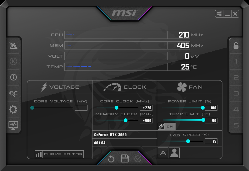 When overclocking the StormX OC, we are limited by the power slider which can't go above 100%. We were still able to add 220MHz to the GPU and 900MHz to the memory however.