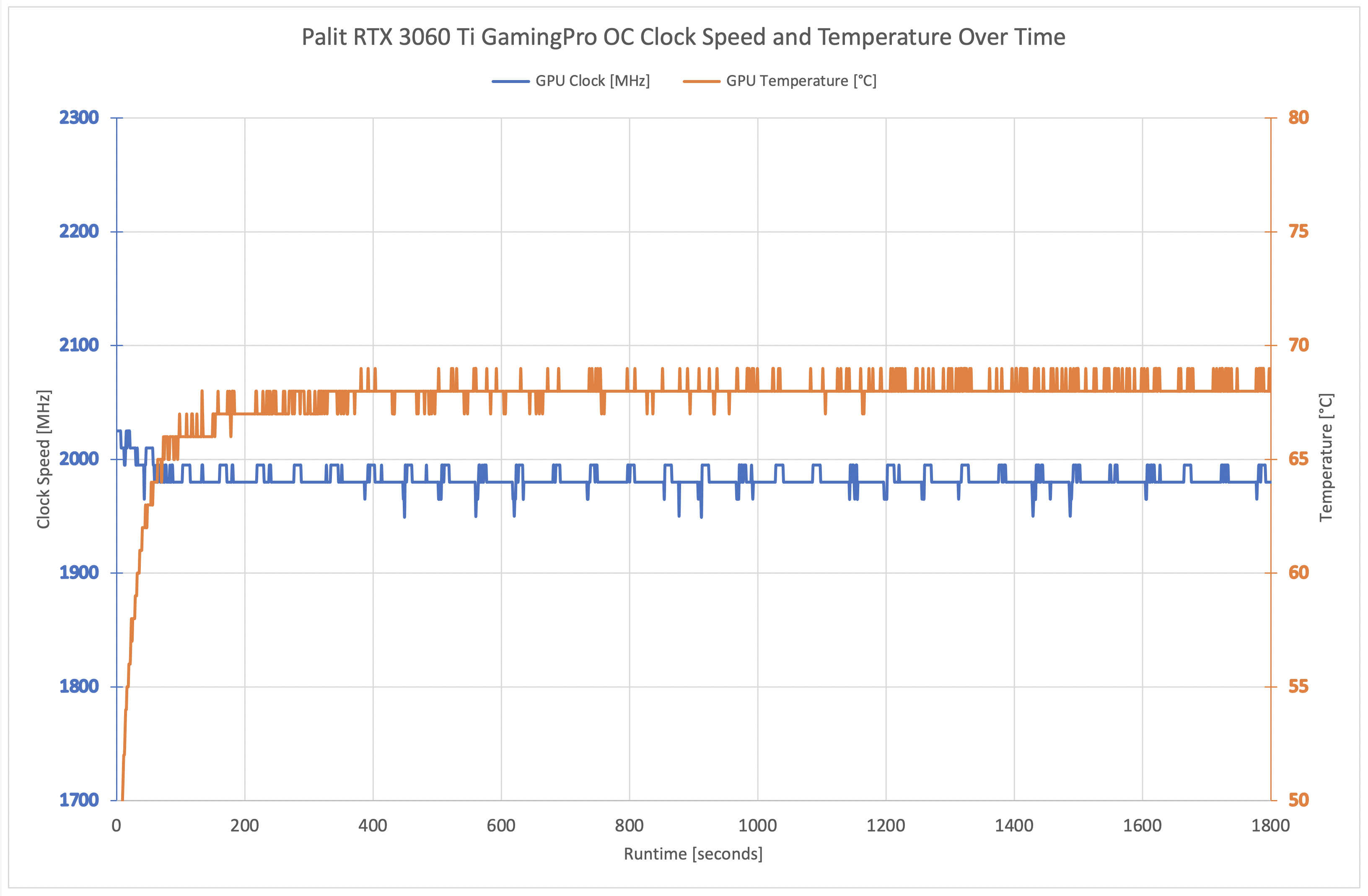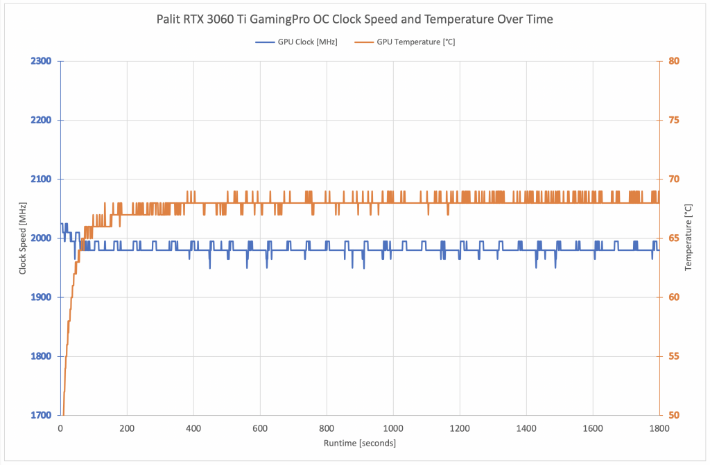 Following on from our look at average GPU clock speed, here we present a series of charts, comparing the frequency response of the GamingPro OC and the RTX 3060 Ti Founders Edition.
