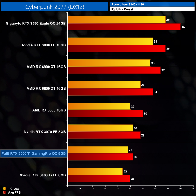 While we don't yet have full comparison data for Cyberpunk 2077, we can see the GamingPro OC comes in 4% faster than the Founders Edition at 1440p. Again, bear in mind this is only a real-world difference of two frames.