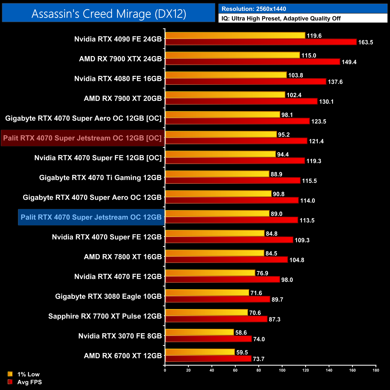 Interestingly, Palit only allows the power limit to be increased up to 104%, so it cannot be increased above 255W. We were still able to add 170MHz to the GPU core and 1500MHz to the memory while overclocking.
