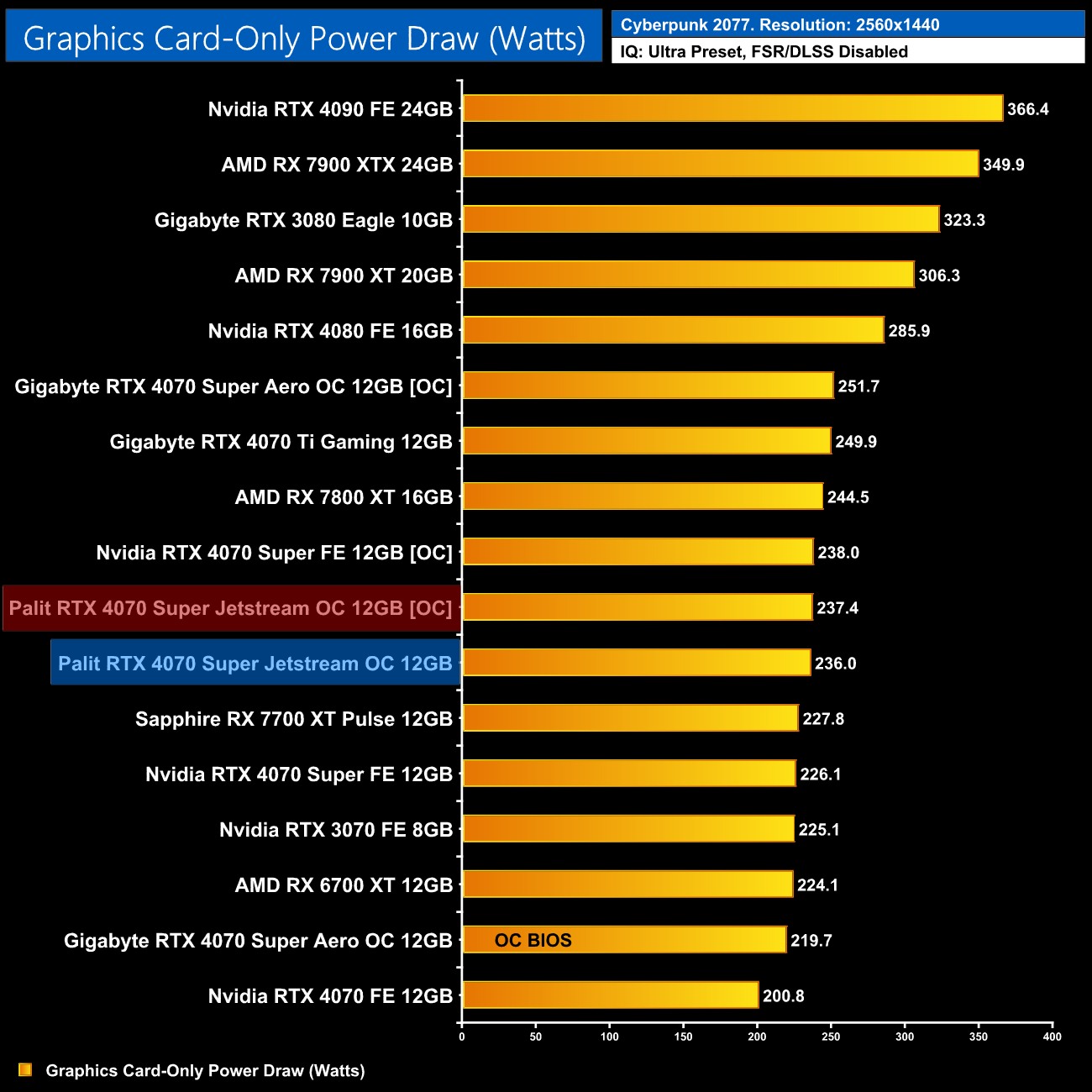 Power draw didn't change much even once overclocked, we measured just a 1W difference overclocked versus stock.