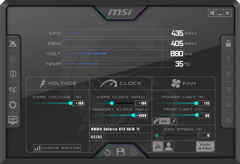 For our manual overclocking tests, we used MSI Afterburner. Our best results are as below.