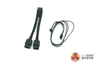 Inside, the only included accessories are a dual 8-pin power adapter as well as an ARGB cable, used to connect the graphics card to your motherboard to enable synchronised lighting.