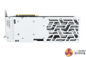 As for the backplate, this is a full-length metal design, though there's some large cutouts towards the end of the card to allow air to pass directly through the heatsink. Palit is also using what it describes as an Anti-Gravity Plate as part of the internal construction of the card which should help prevent sagging. It is also worth noting there is no dual-BIOS switch on the GamingPro OC.