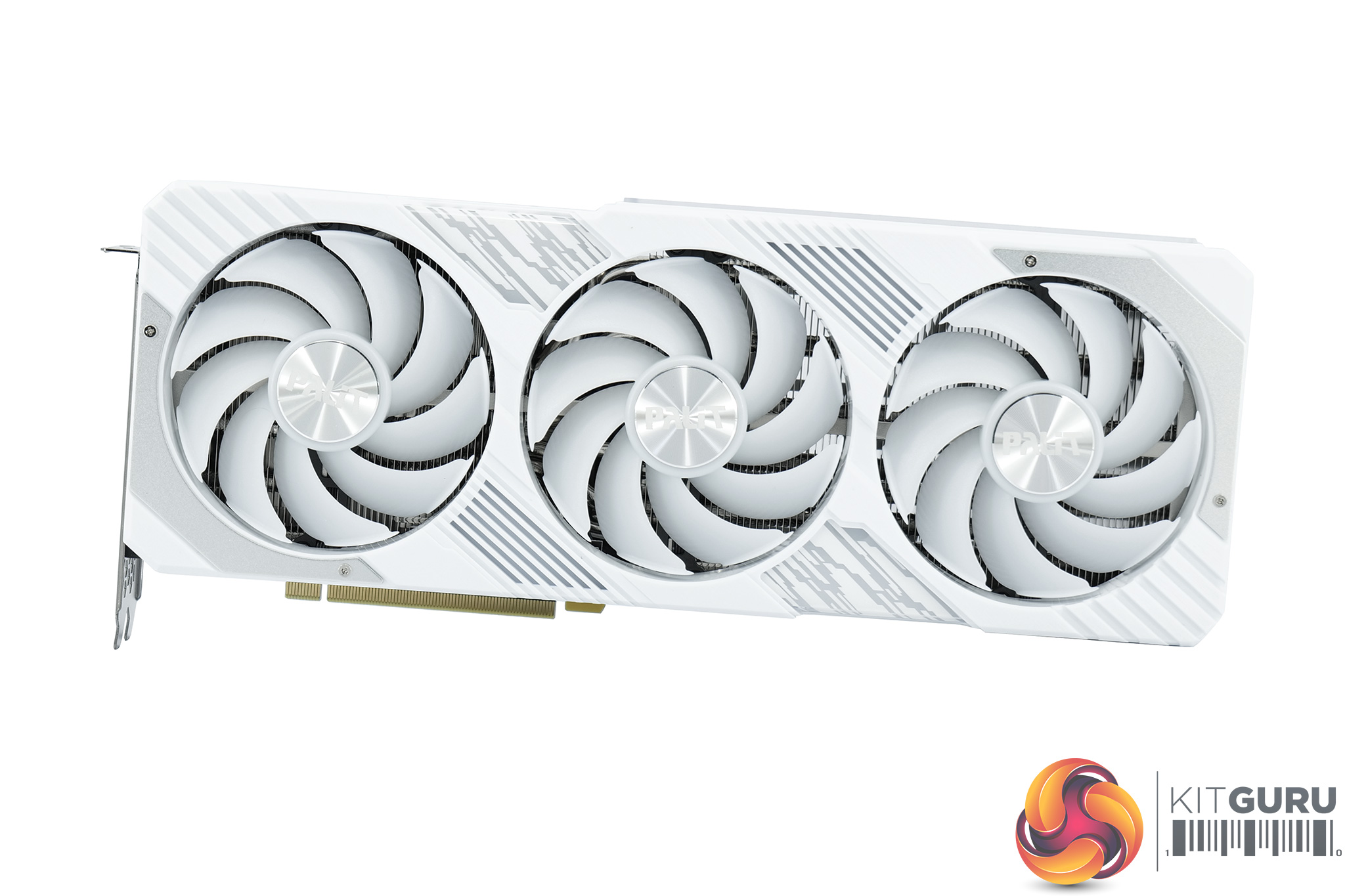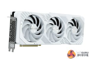 The three fans also feature white fan blades, and these use Palit's Gale Hunter design, measuring approximately 95mm in diameter. These also come fitted with ‘winglets' on each fan tail, something Palit claims can help concentrate airflow and avoid the ‘vortex effect'.