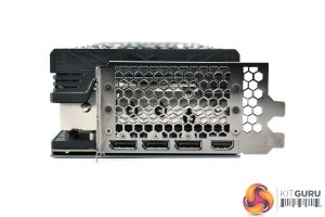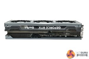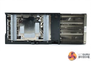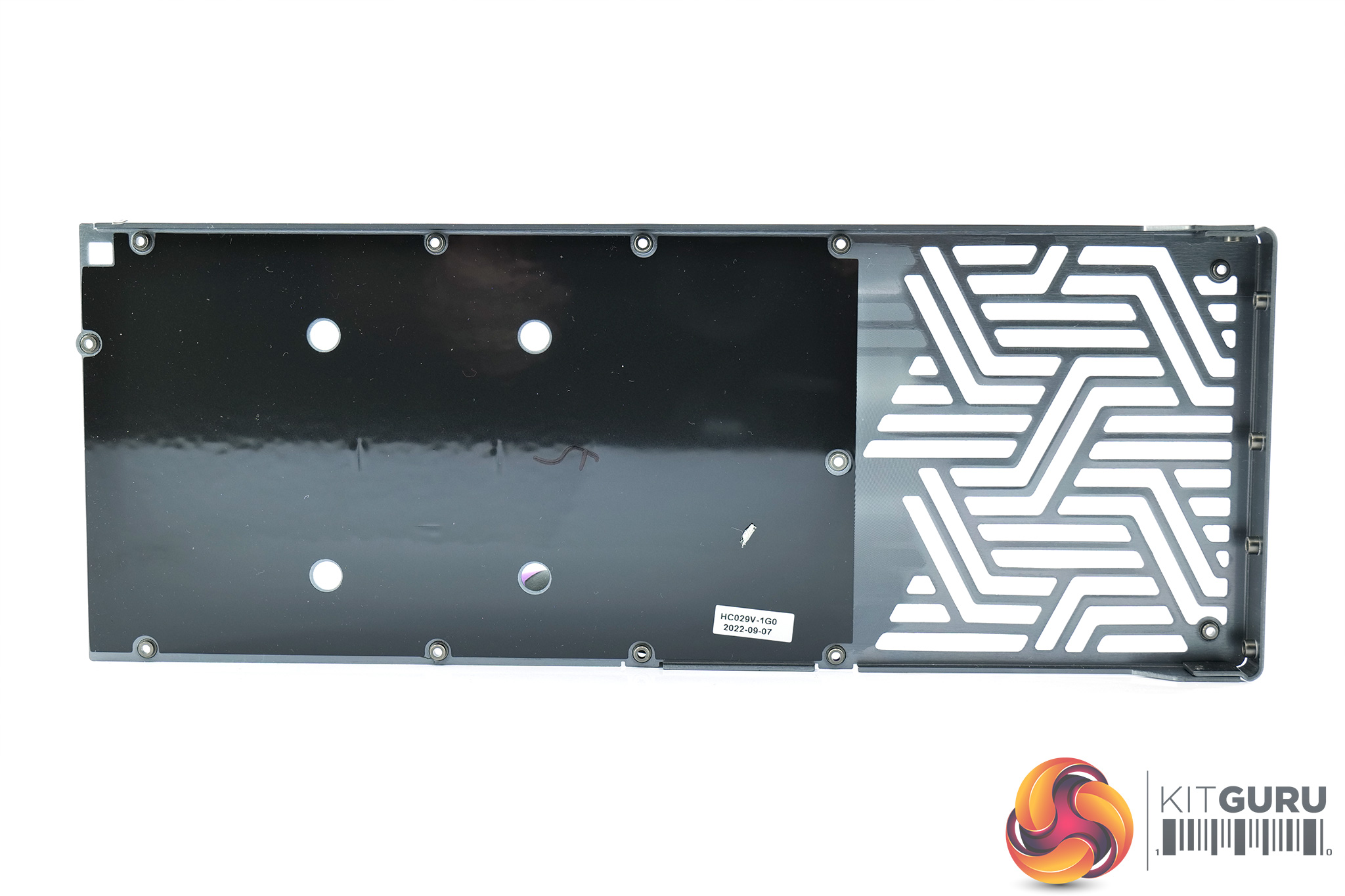 Flipping the card over we get a look at the full-length metal backplate, with a number of cutouts to allow air to pass straight through the heatsink.