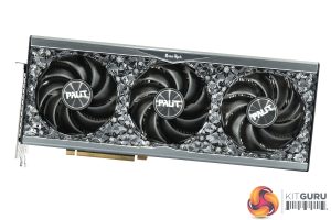 We also get a look at the three 90mm fans, using Palit's ‘gale hunter' design, with a new ‘winglet fantail' that Palit claims helps to increase airflow concentration.