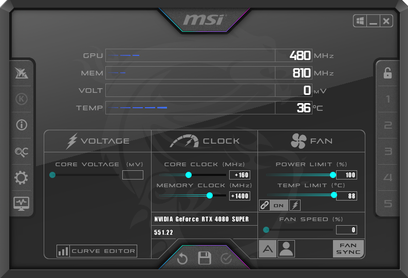 For our manual overclocking tests, we used MSI Afterburner. Our best results are as below.