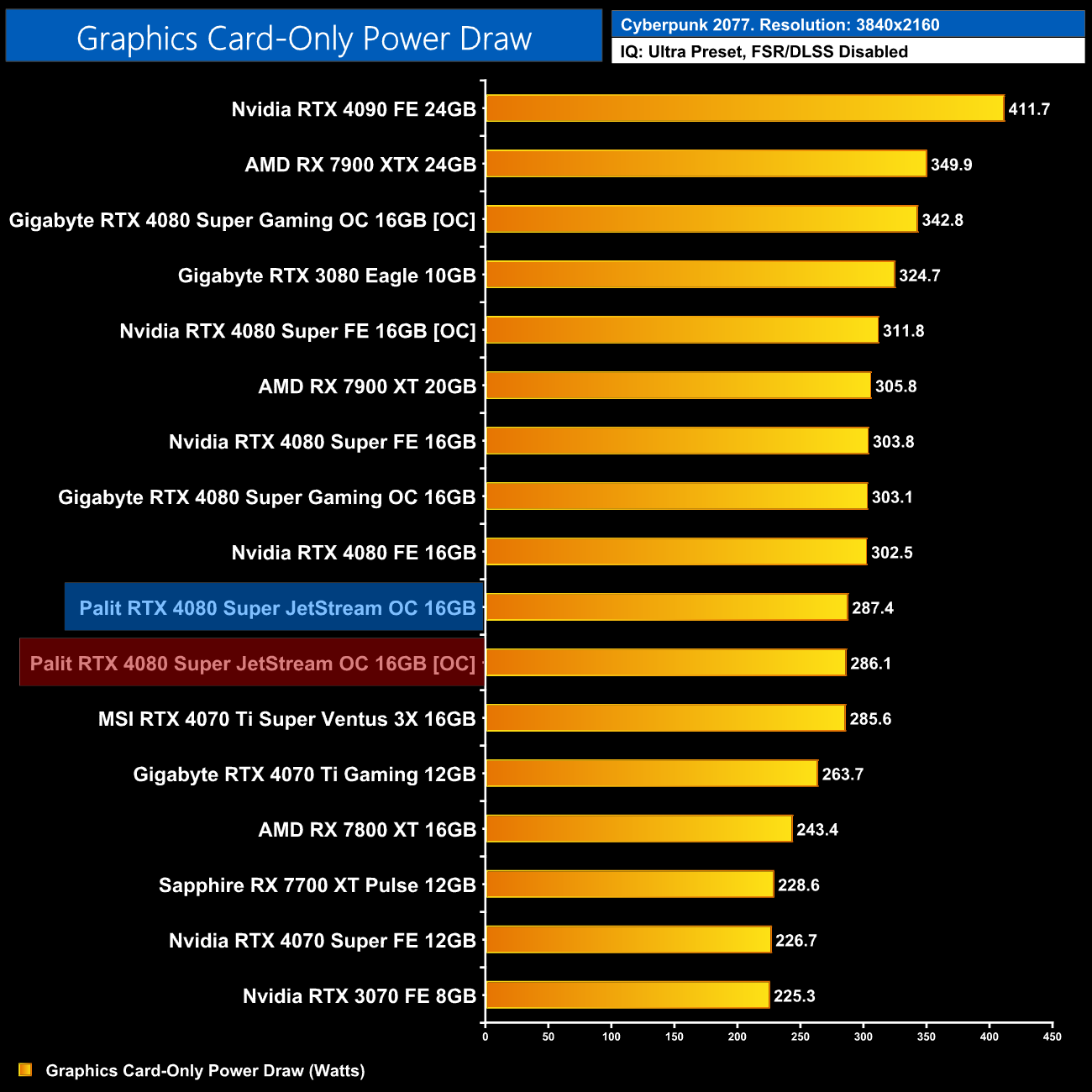 Unfortunately, Palit does not allow the power limit to be increased beyond 100%, or 320W, which limits overclocking headroom. I was still able to add 160MHz to the GPU and 1400MHz to the memory.