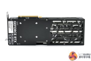 As for the backplate, this is a full-length metal design, though there's some large cutouts towards the end of the card to allow air to pass directly through the heatsink. Palit is also using what it describes as an Anti-Gravity Plate as part of the internal construction of the card which should help prevent sagging.