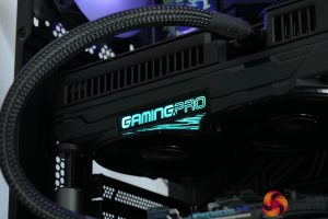 Here we can see the RGB lighting in action, and you can also connect an ARGB cable to the card and control the lighting via your motherboard if that is your preference.