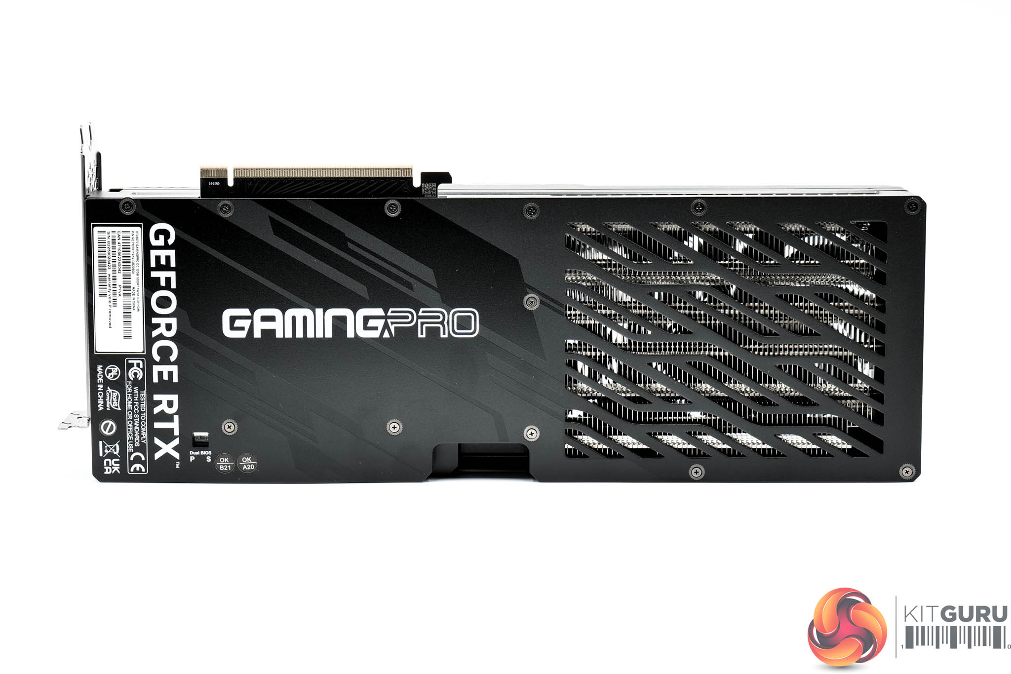 As for the backplate, it's another full-length metal design, but almost half of it has been cut out to act as the ‘flow through' area, though it's not completely open as Palit has opted for a vented approach.