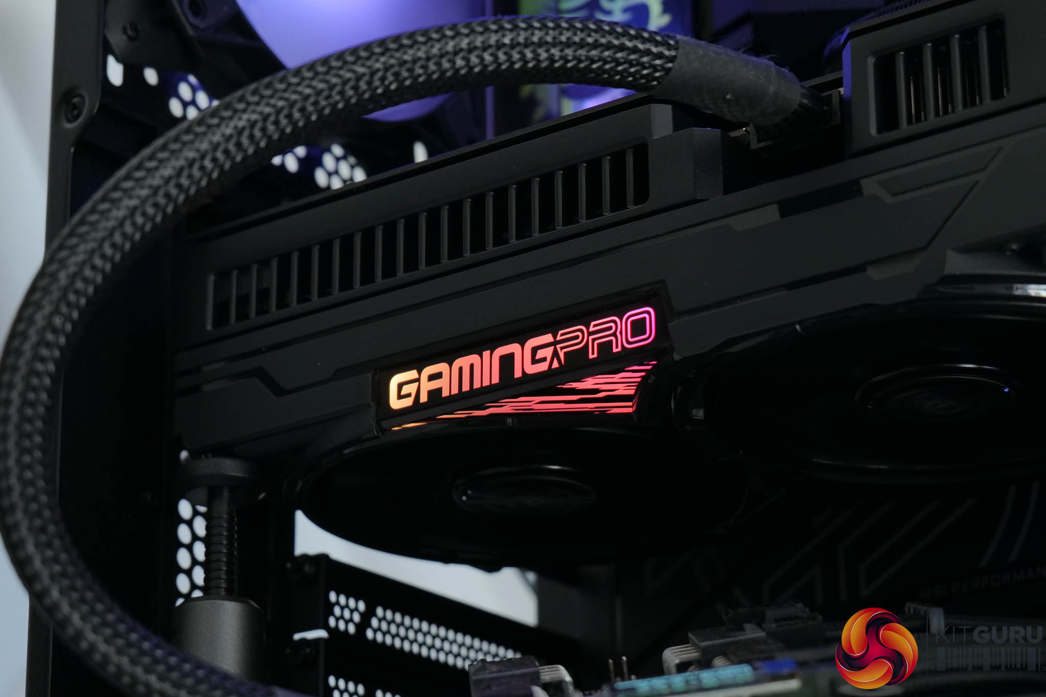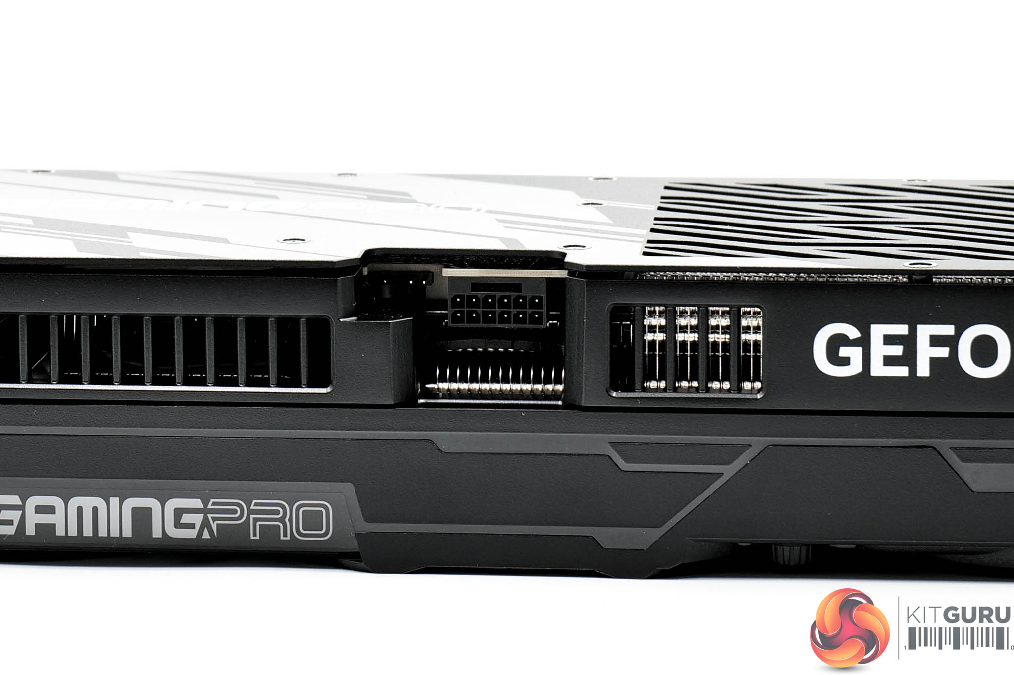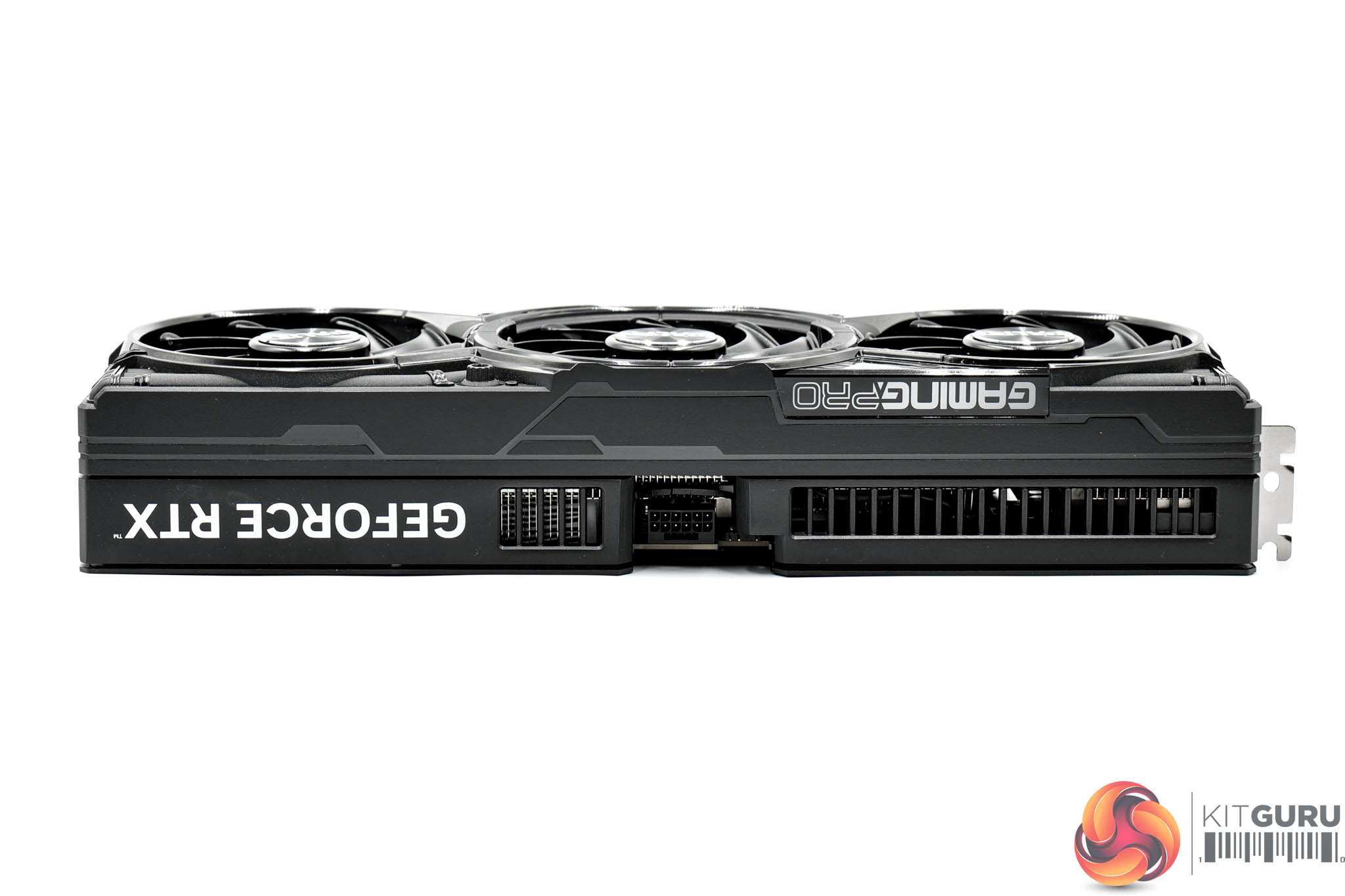 The front side of the card is home to the GeForce RTX and GamingPro logos, the latter of which is illuminated by RGB LEDs.