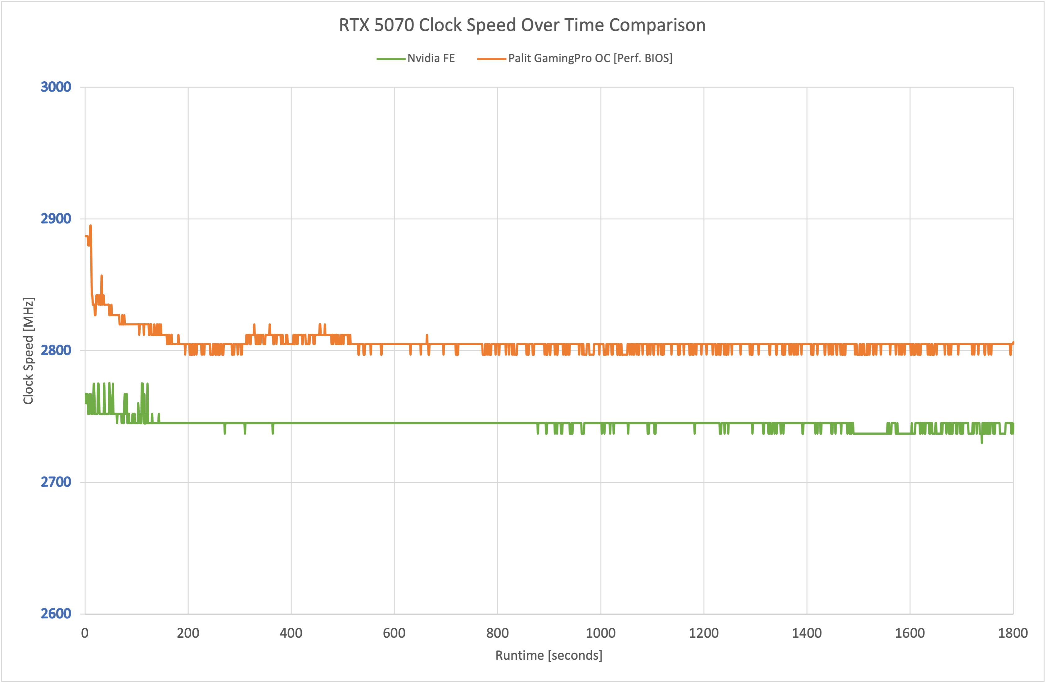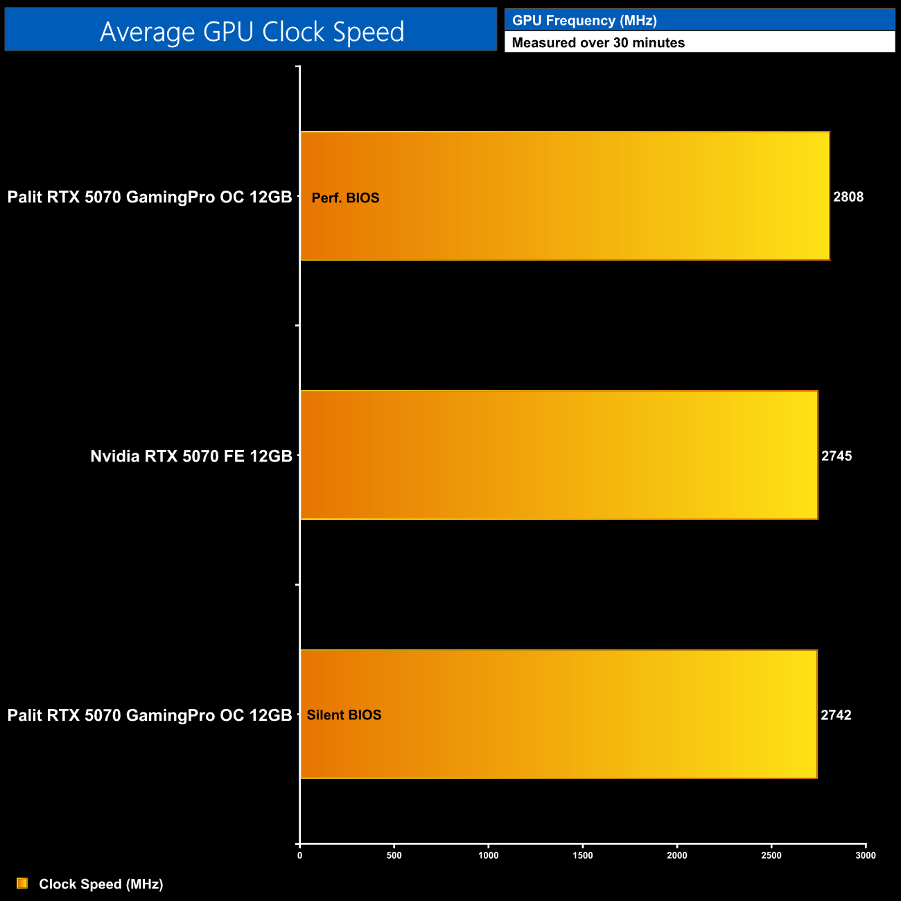 In fact, averaged over the thirty minute stress test, the difference was 63MHz, so it's no surprise that didn't lead to significant real-world performance gains. We also tested the GamingPro OC's Silent BIOS, which ran just as fast as the Nvidia Founders Edition.