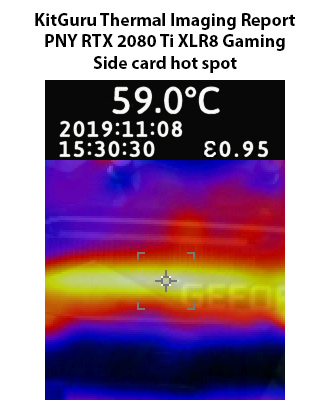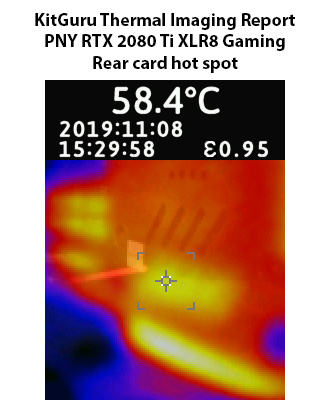 There's nothing to worry about in regards to the thermal camera images, with hotspots around 59C on both the front and back of the card.