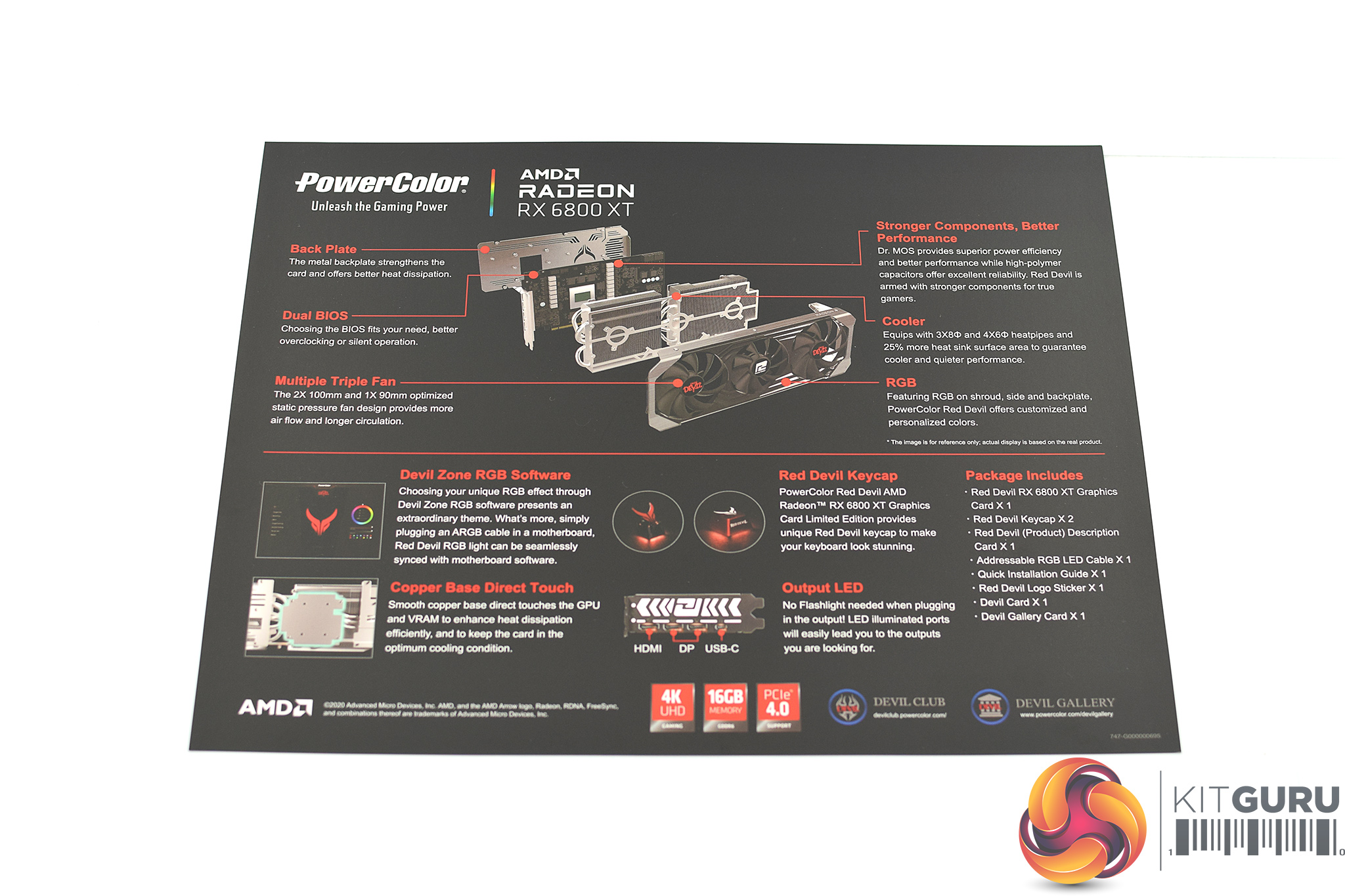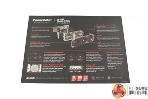 On the back, PowerColor highlights some key features of the GPU, as well as the minimum system requirements.