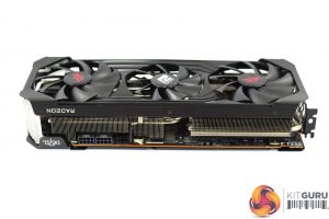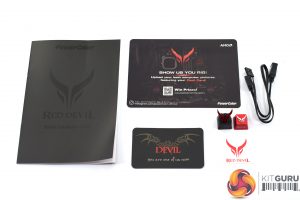 As for the backplate, this is a full-length aluminium plate in a dark/gunmetal grey colour, while there's plenty of cut-outs and ventilation for the back of the PCB. That Red Devil logo visible on the back is illuminated by RGB LEDs once powered on. We can also note our sample is listed as number 5 of 1000 limited edition units.