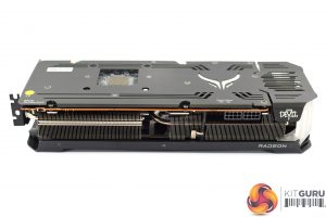 Speaking of the fans, the two outer ones measure 100mm across, whereas the central fan measures 90mm. For comparison, the 5700 XT model had 3x 90mm fans.