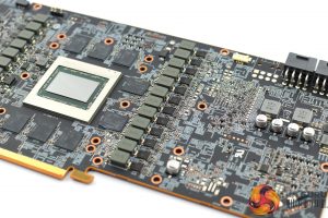 In terms of the PCB, the Red Devil's board design is generally pretty similar to reference, but PowerColor has beefed things up slightly with a 16-phase VRM for the GPU, compared to the 13-phase design used for the reference card.