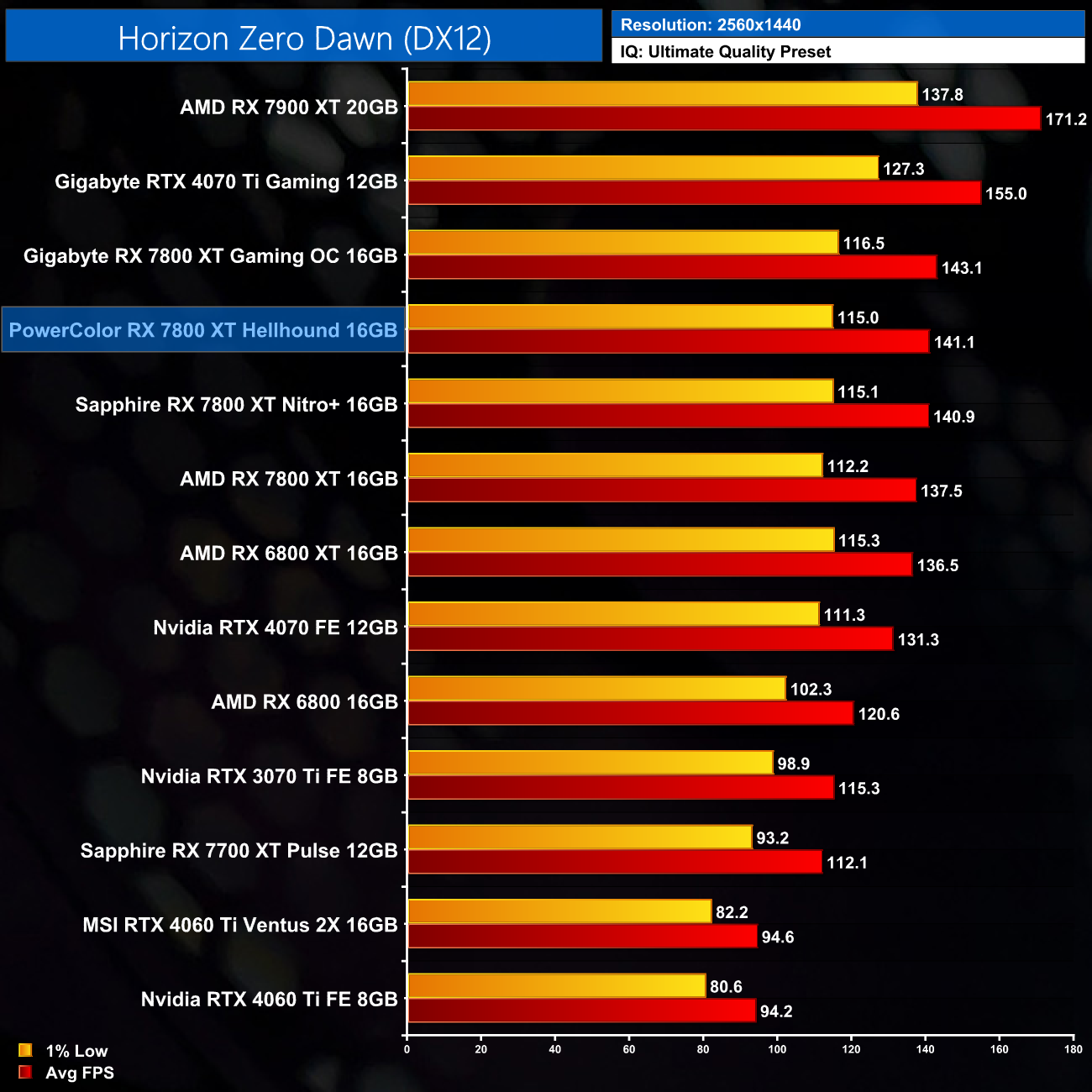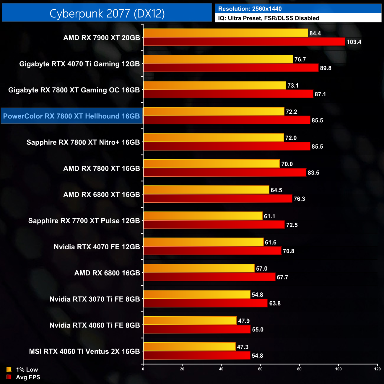We don't focus heavily on game benchmarks in these AIB reviews as the performance differences are usually within just a few percent of the reference card. That's the case here with the PowerColor Hellhound, as it comes in 2-3% faster than AMD's reference design. If you do want to see performance in a wider number of games, you can find our launch day review here.