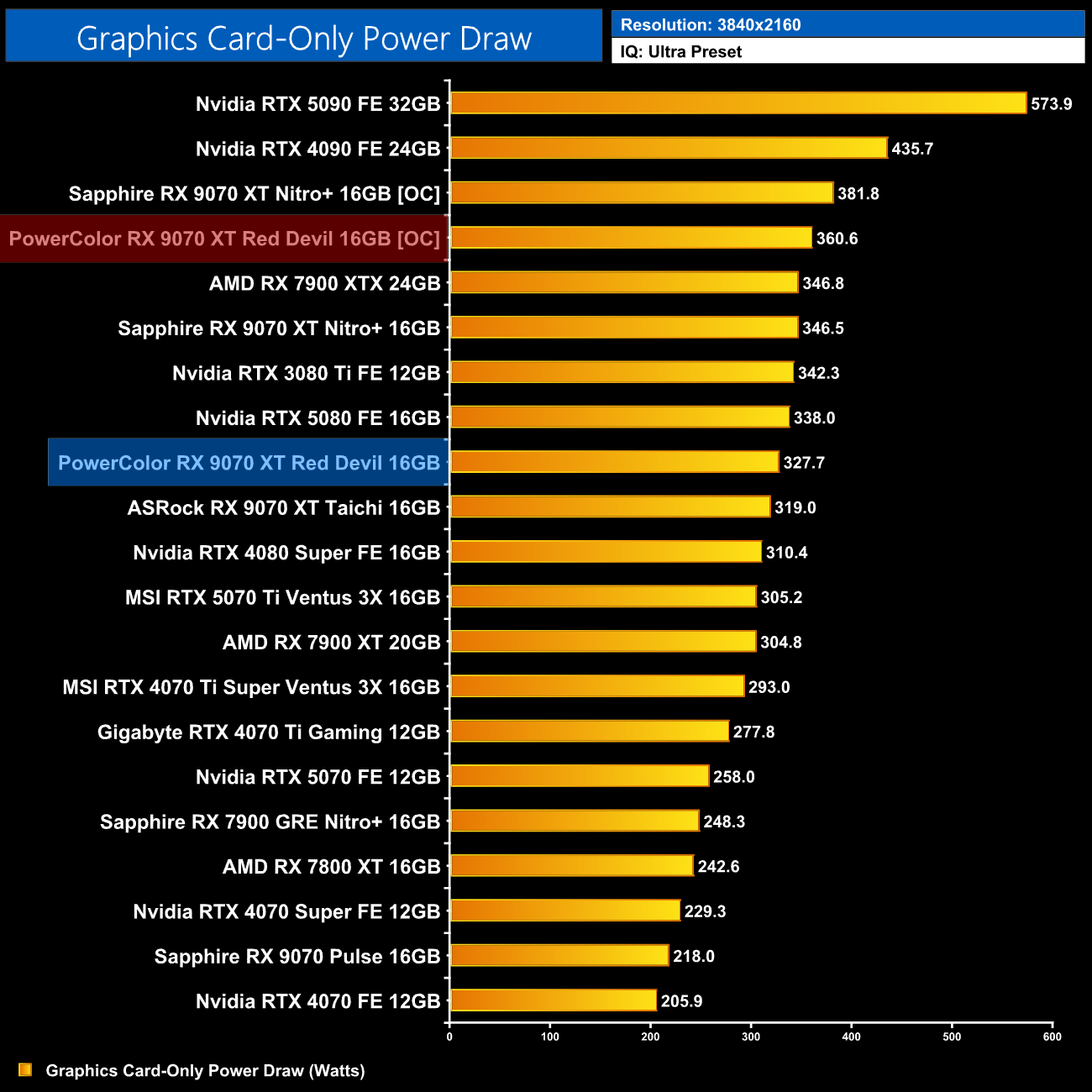 We did see power draw rise a good amount however, hitting just over 360W when overclocked – a 10% increase over stock.