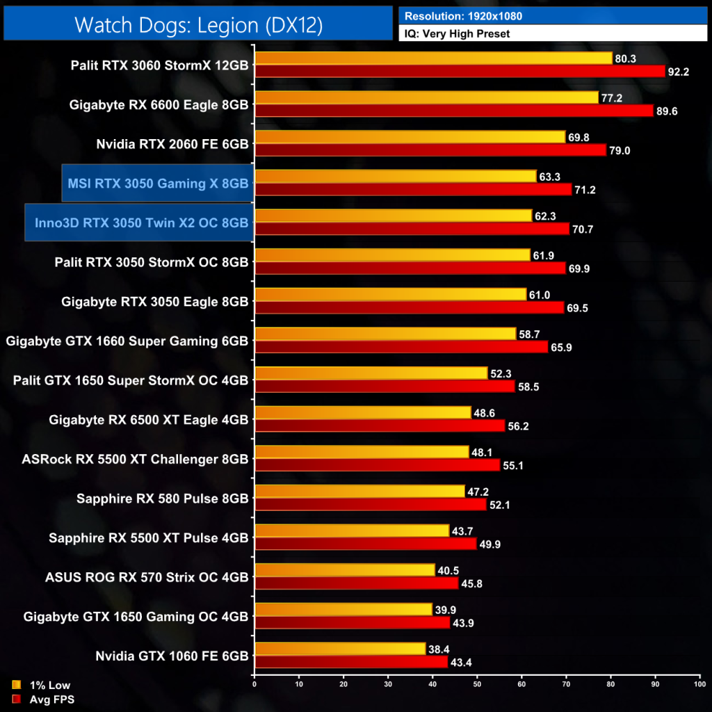 We don't test a lot of games for these AIB cards reviews, for the simple reason that no factory overclock is going to add more than a handful of FPS to the GPU in question. That is perfectly illustrated by the performance numbers above – yes, both the Gaming X and Twin X2 OC are faster than the Gigabyte Eagle on paper, but the differences are so marginal they are effectively of no real consequence. In other words, no one is going to be able to tell the difference between 71FPS and 69FPS.
