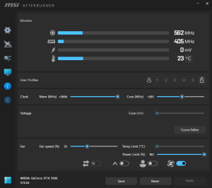 For our manual overclocking tests, we used MSI Afterburner. Our best results are as below.