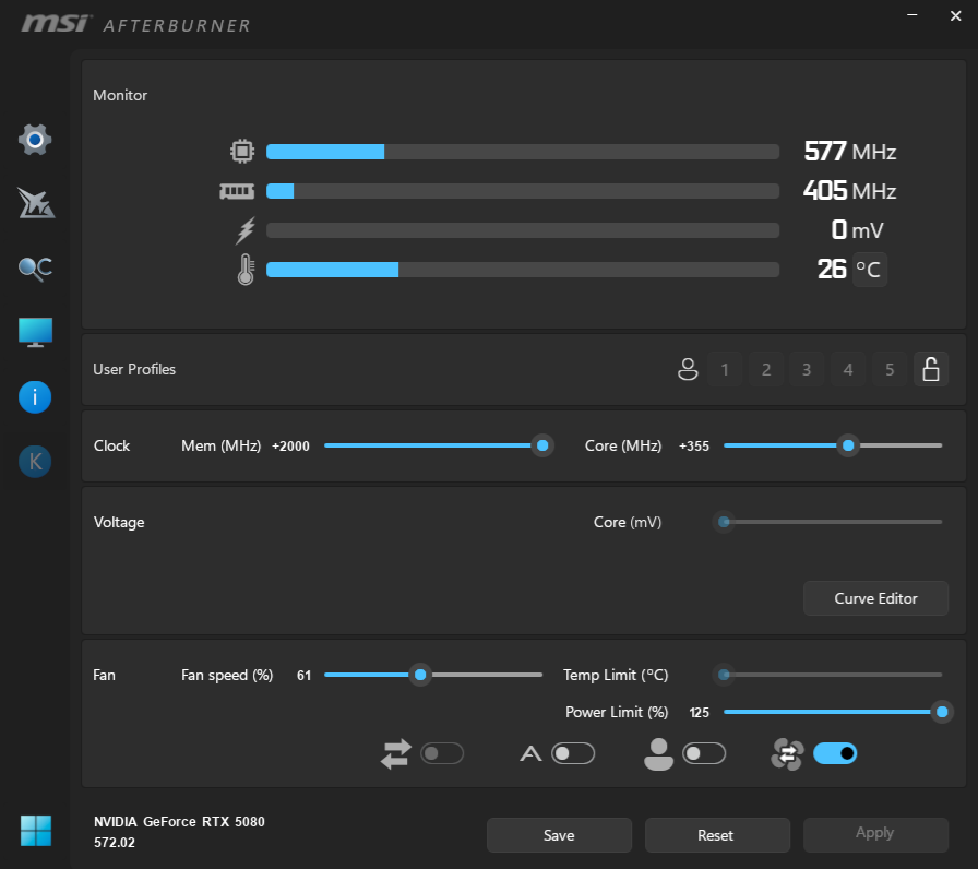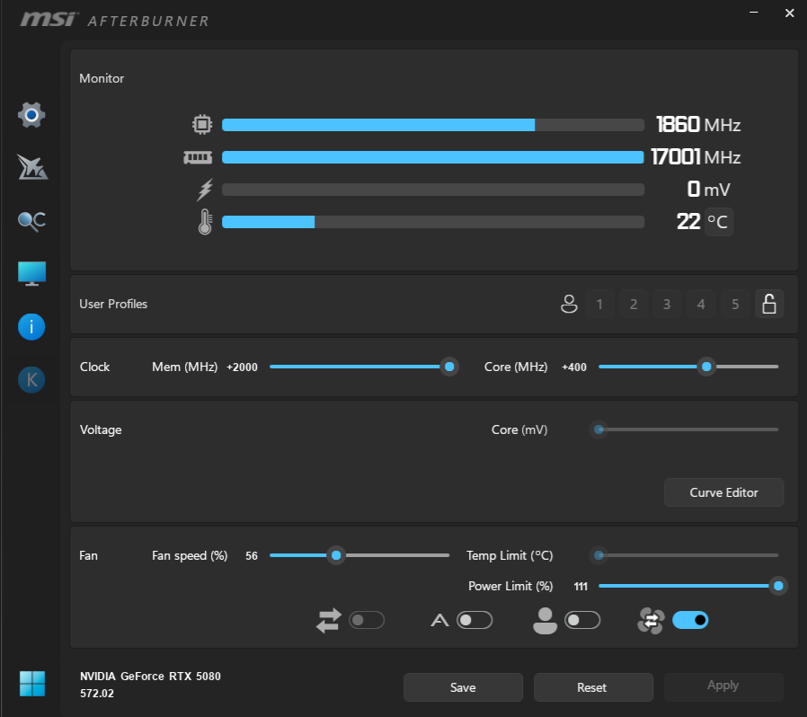 For our manual overclocking tests, we used MSI Afterburner. Our best results are as below.