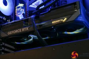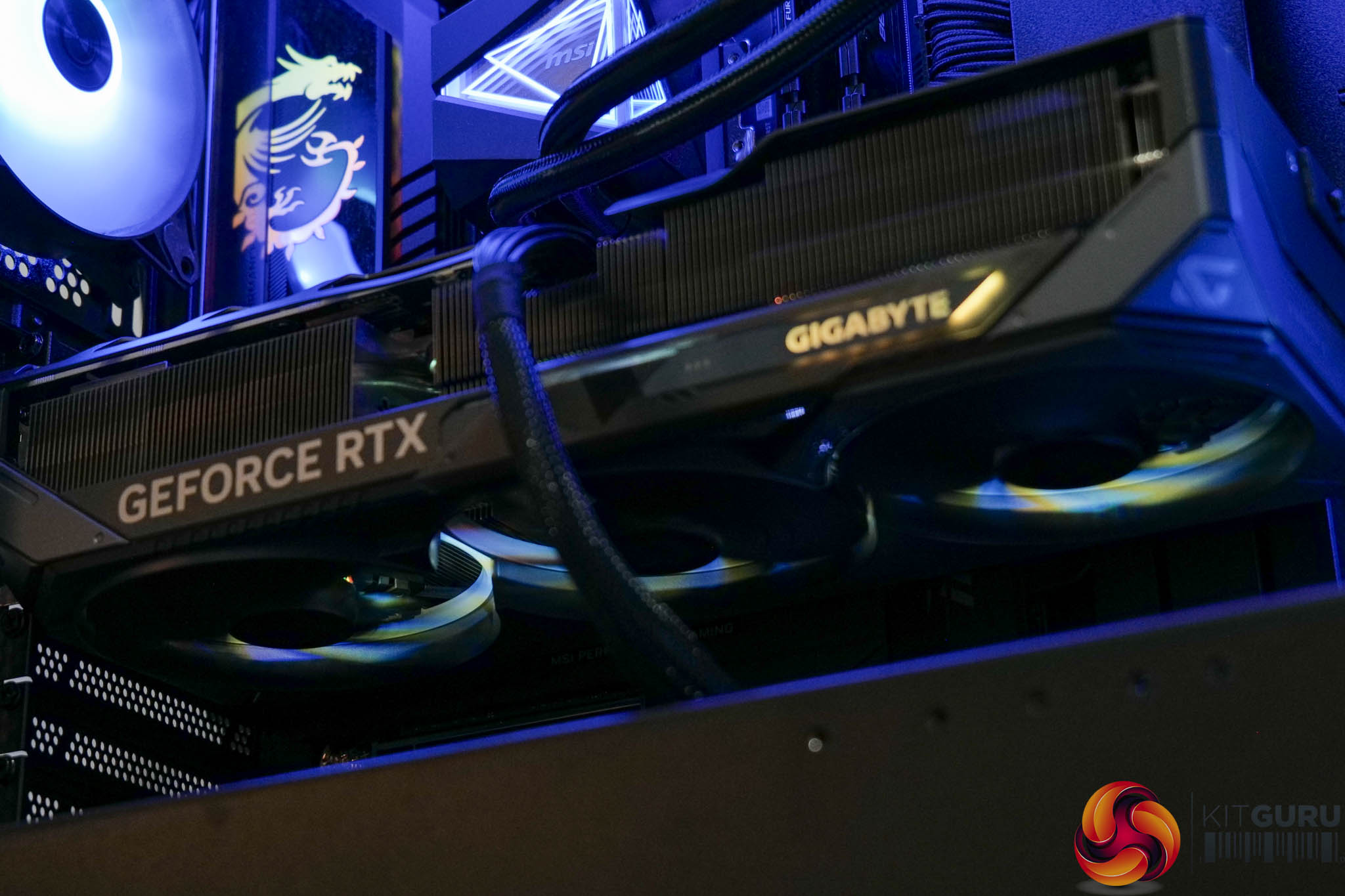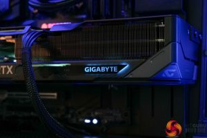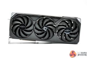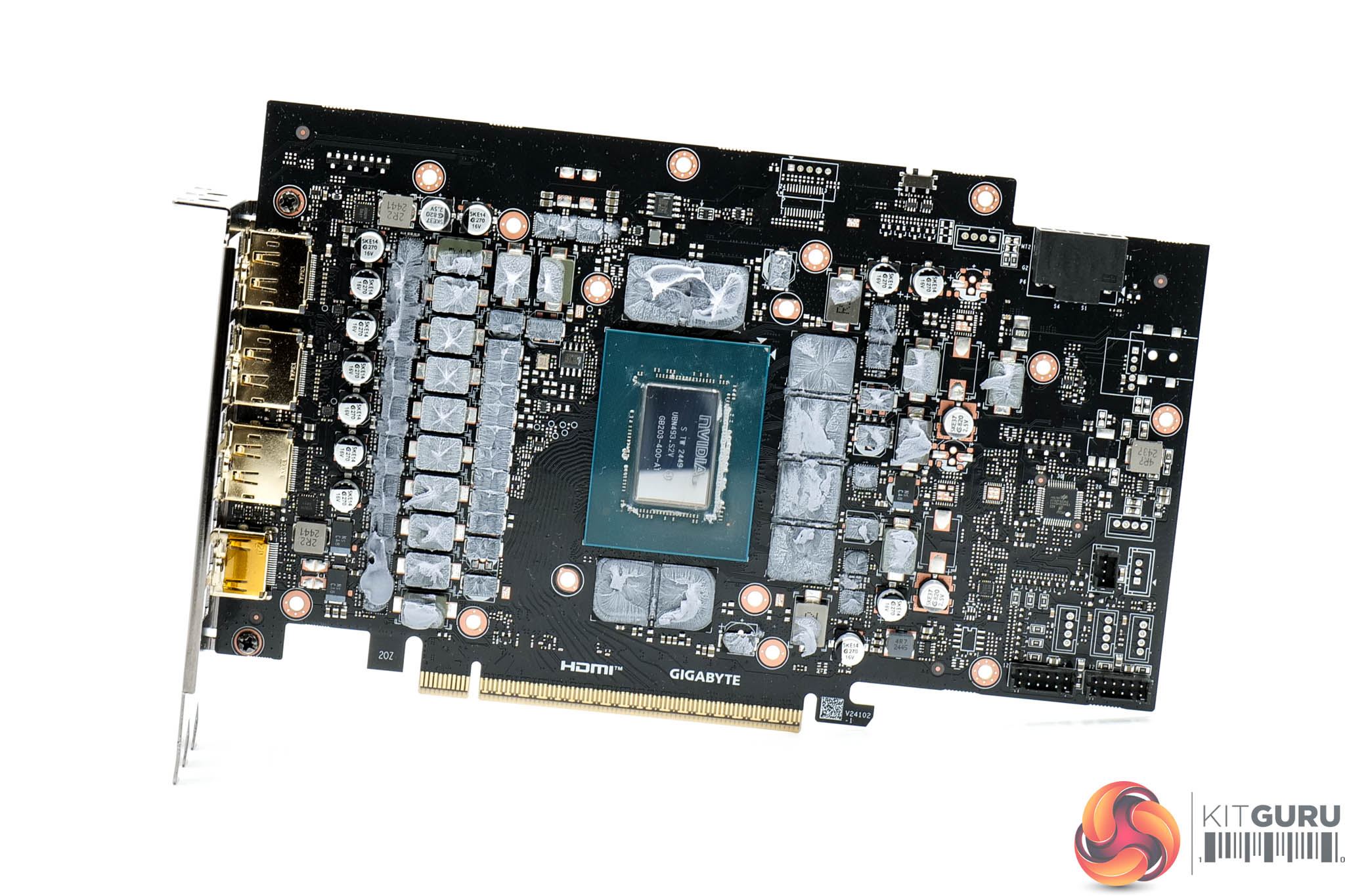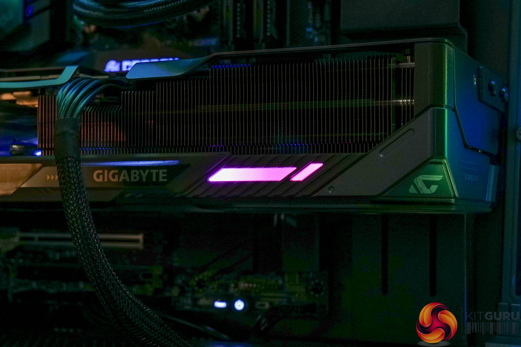 The front side of the card is home to the GeForce RTX and Gigabyte logos – the latter of which is one of the RGB zones on the card.