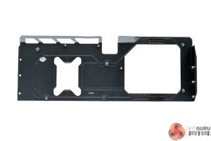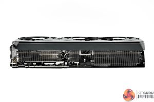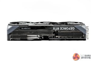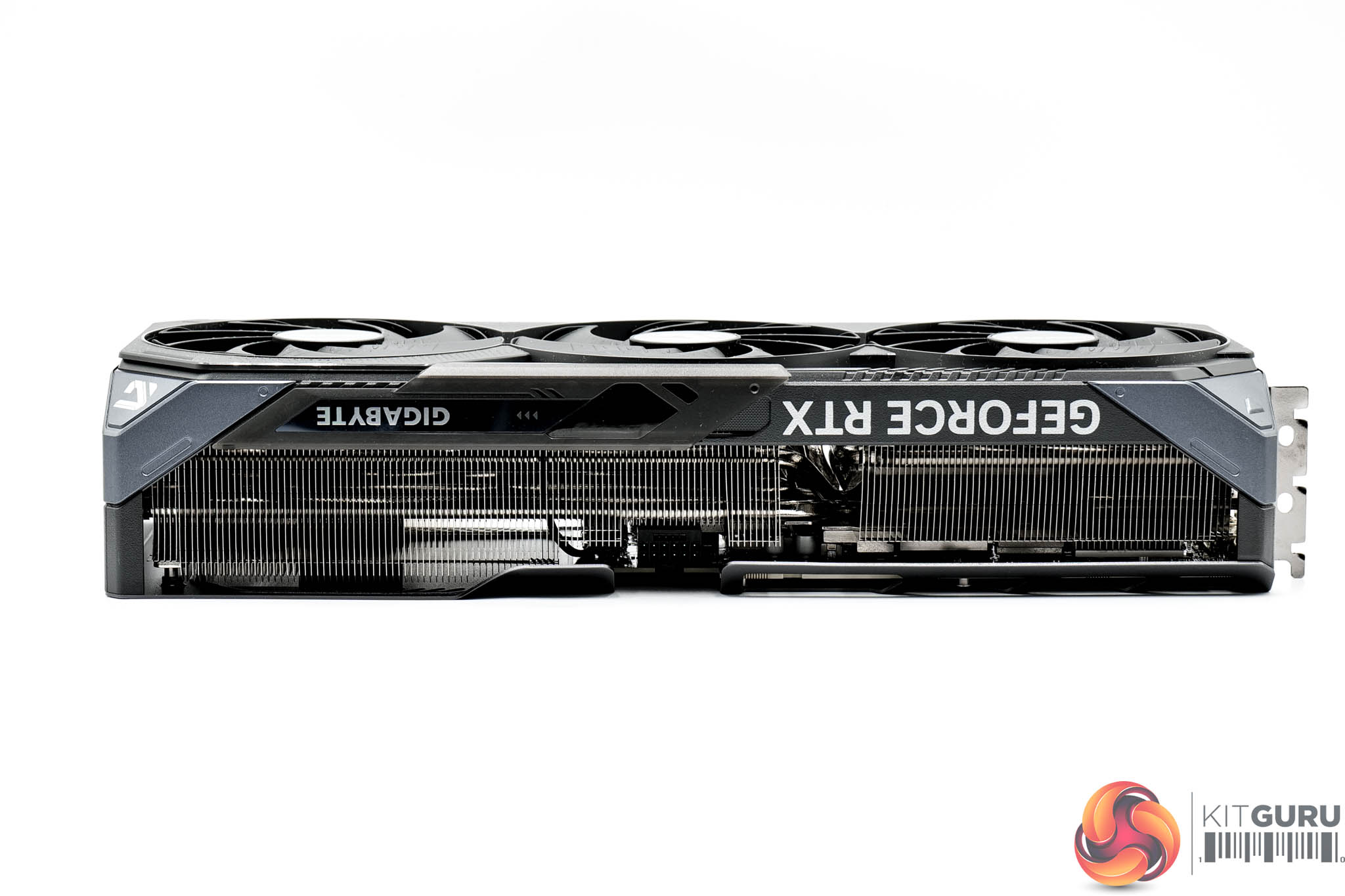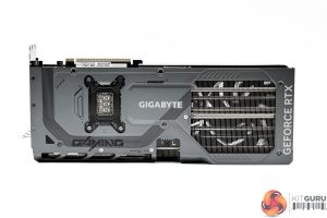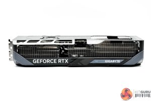 As for the backplate, this made of a grey metal and while it is full-length, there is a very sizeable ‘flow through' area to improve with heat dissipation. It's interesting that the backplate ‘wraps over' the side slightly, which Gigabyte claims improves overall structural rigidity – in any case, it looks pretty cool.