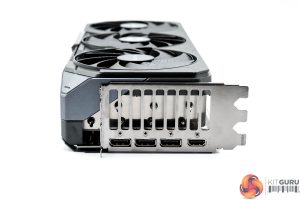 As expected, power is delivered by a single 12V-2X6 connector. Display outputs consist of three DP 2.1 and one HDMI 2.1 ports.