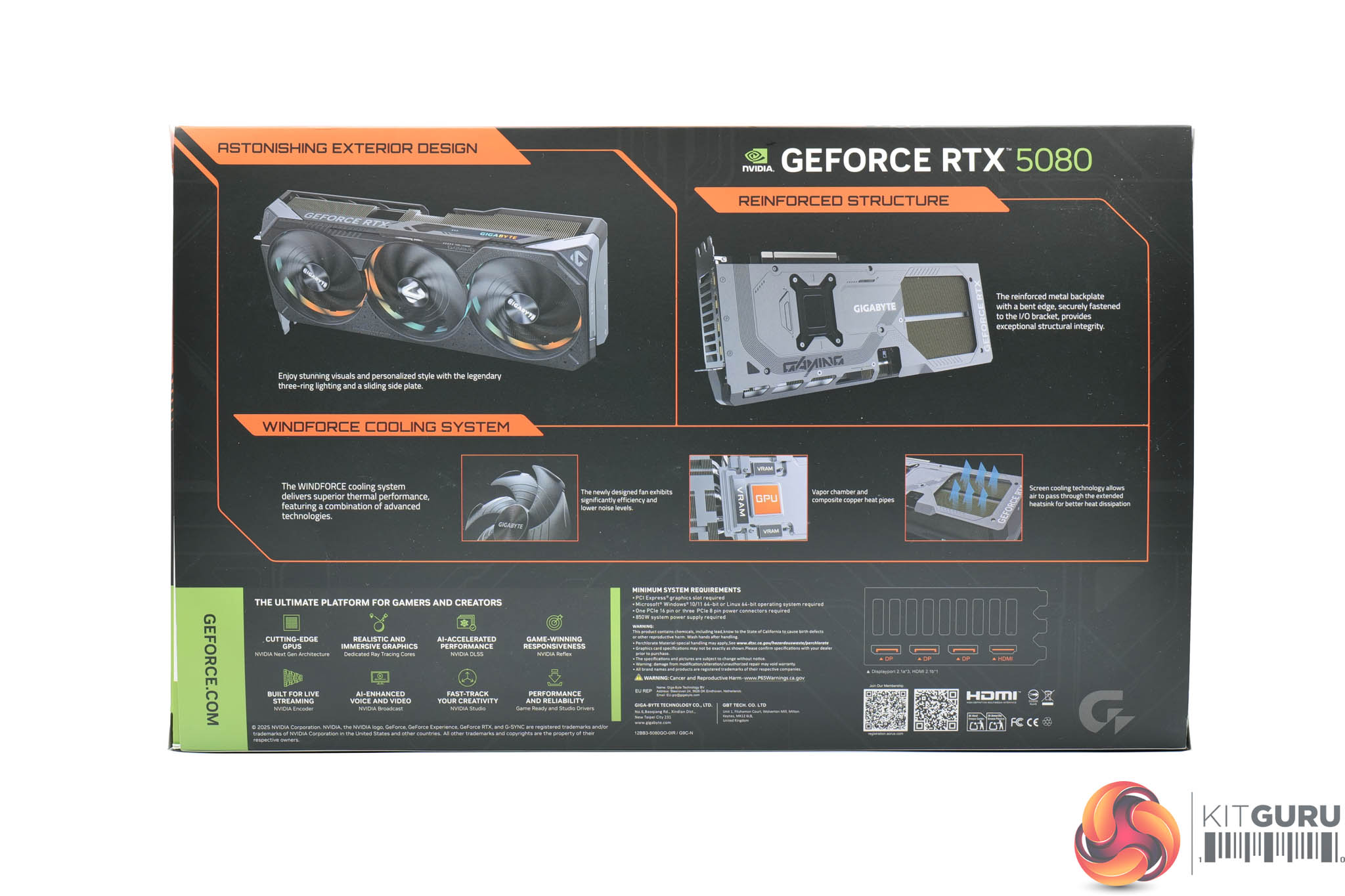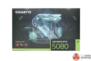 Gigabyte's RTX 5080 Gaming OC ships in a black box with a large ‘G' for ‘Gaming' logo on the front.