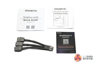 Inside there's a few quick-start guides and a warranty note, alongside the triple 8-pin PCIe power adapter.