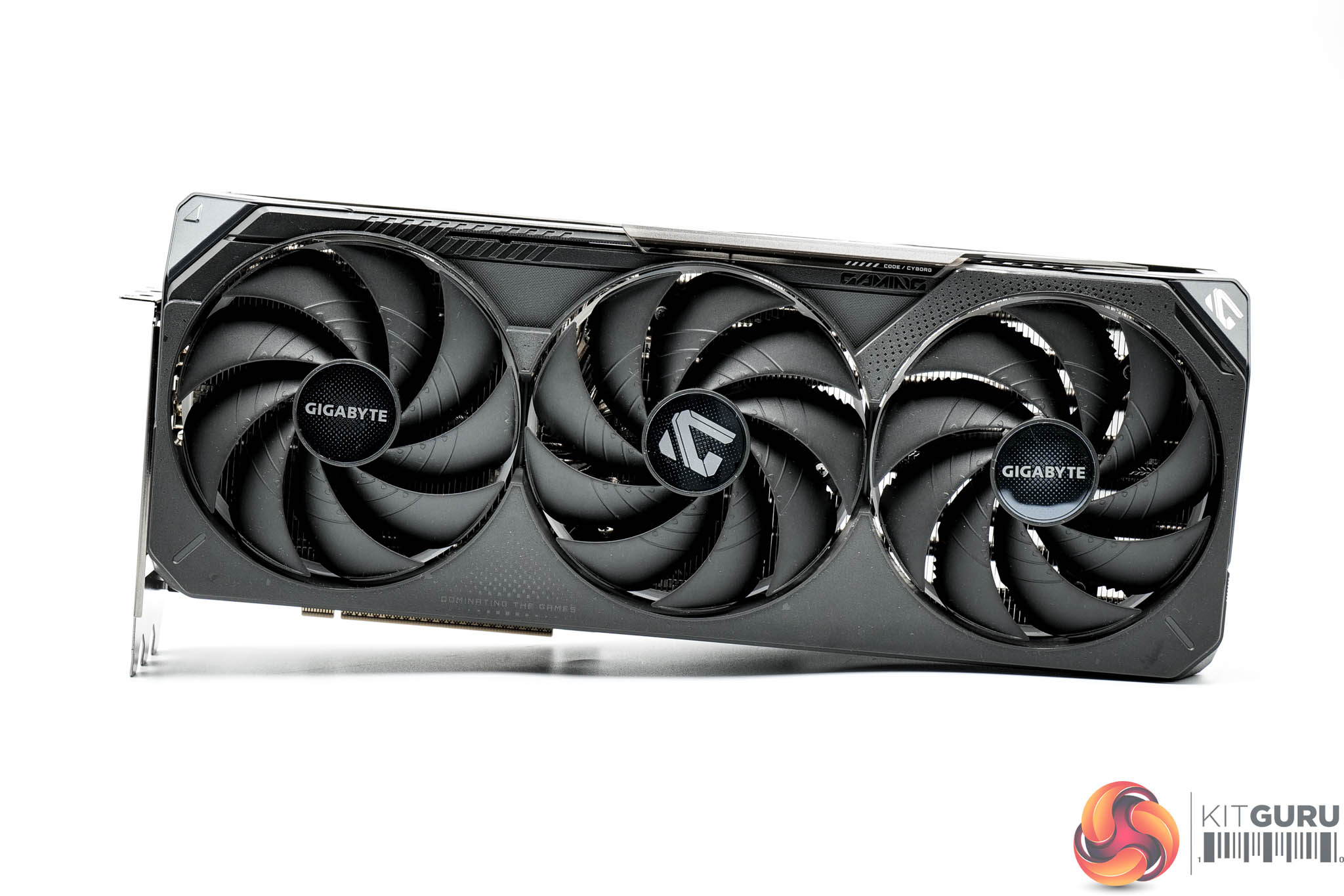 As for the card itself, while not fully identical to the Gaming OC design of the 40 series – such as the 4080 Super – the overall aesthetic is very similar. That means we find a matte black plastic shroud, and Gigabyte makes a point of emphasising that this is ‘textured' plastic, which adds some visual interest.