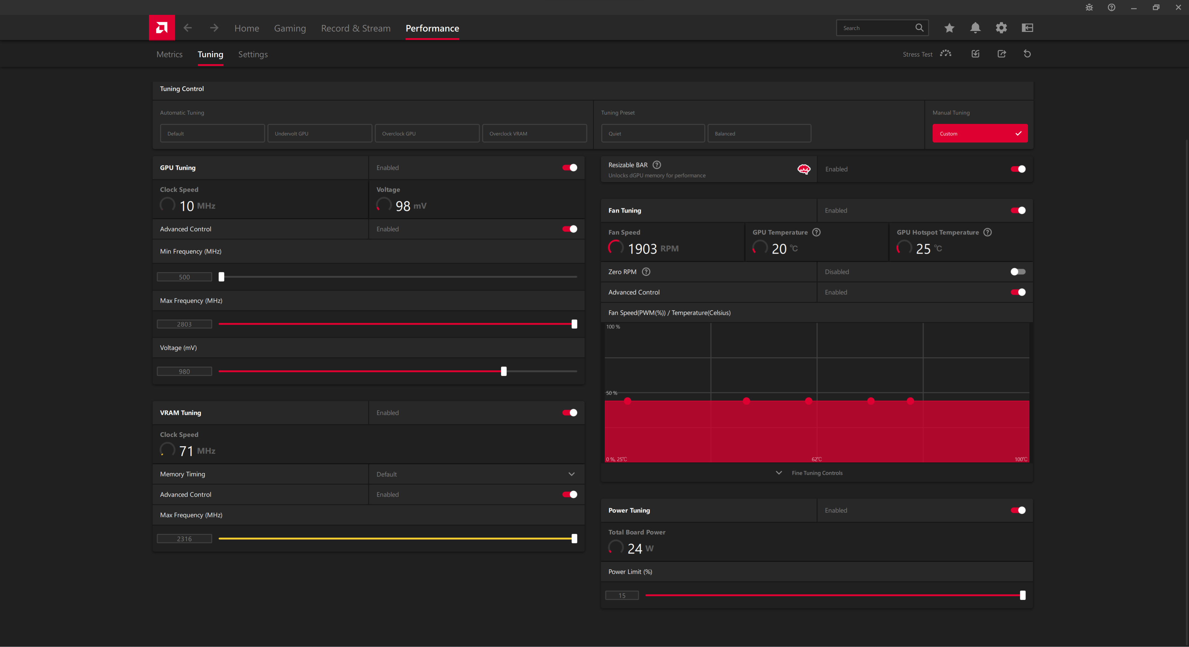 For our manual overclocking tests, we used AMD's Adrenalin software. Our best results are as below.