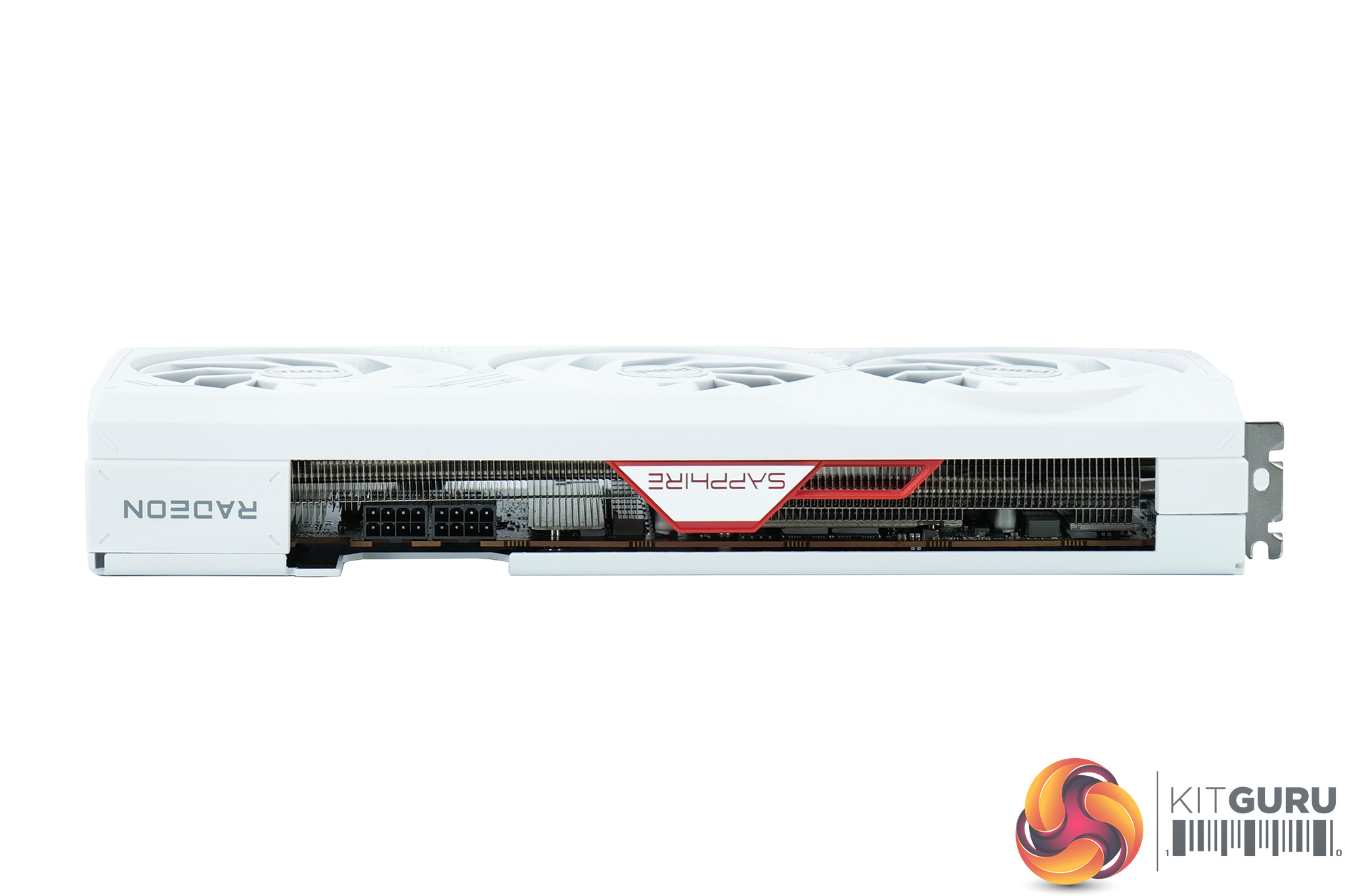 We can also note the triple fan cooler, using Sapphire's Angular Velocity Fan Blades in white, while each fan measures in at just under 100mm in diameter.