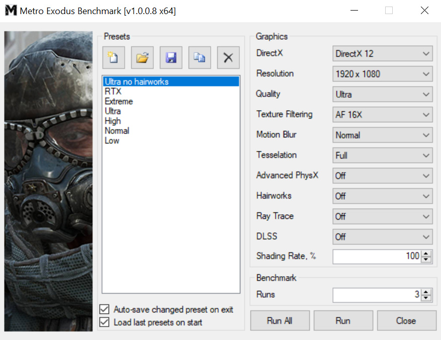 We test using the Ultra preset, but with Hairworks and Advanced PhysX turned off, DX12 API.